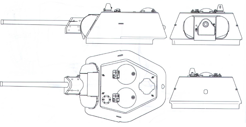 Kahjuks ei ole ma leidnud sellest nr.733 tankist suuremat pilti, kuid kaks asja on kindlad - tankil ei ole ühe luugiga vanatüübi torn (nagu sinu joonisel) ning pildil on näha kahte ühesugust avatud luuki. Selliste luukidega masinaid (ilma komandöri tornita) kutsuti Miki-Hiirteks, eks ta avadud luukidega seda meenutabki. Kuna selliselt pisikeselt pildilt pole võimalik pisidetaile eristada siis panen siia kaks joonist, milline see torn olla võiks, ise kaldun esimese variandi poole.