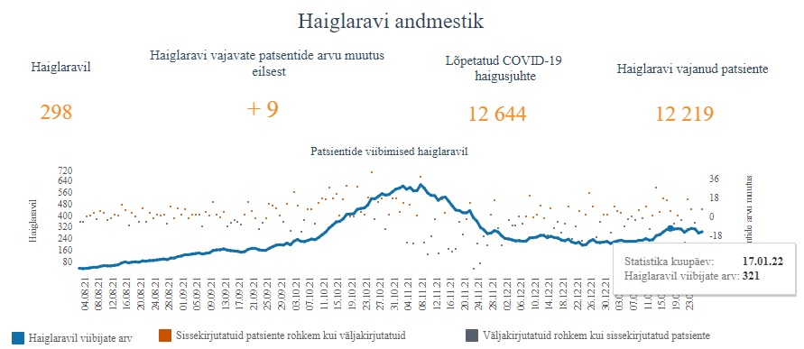 Ma näen natuke suuremat langust. 17.01 oli haiglaravil 321 inimest. Praegu alla 300. Samal ajal nakatumine lendab graafikul nina üles.