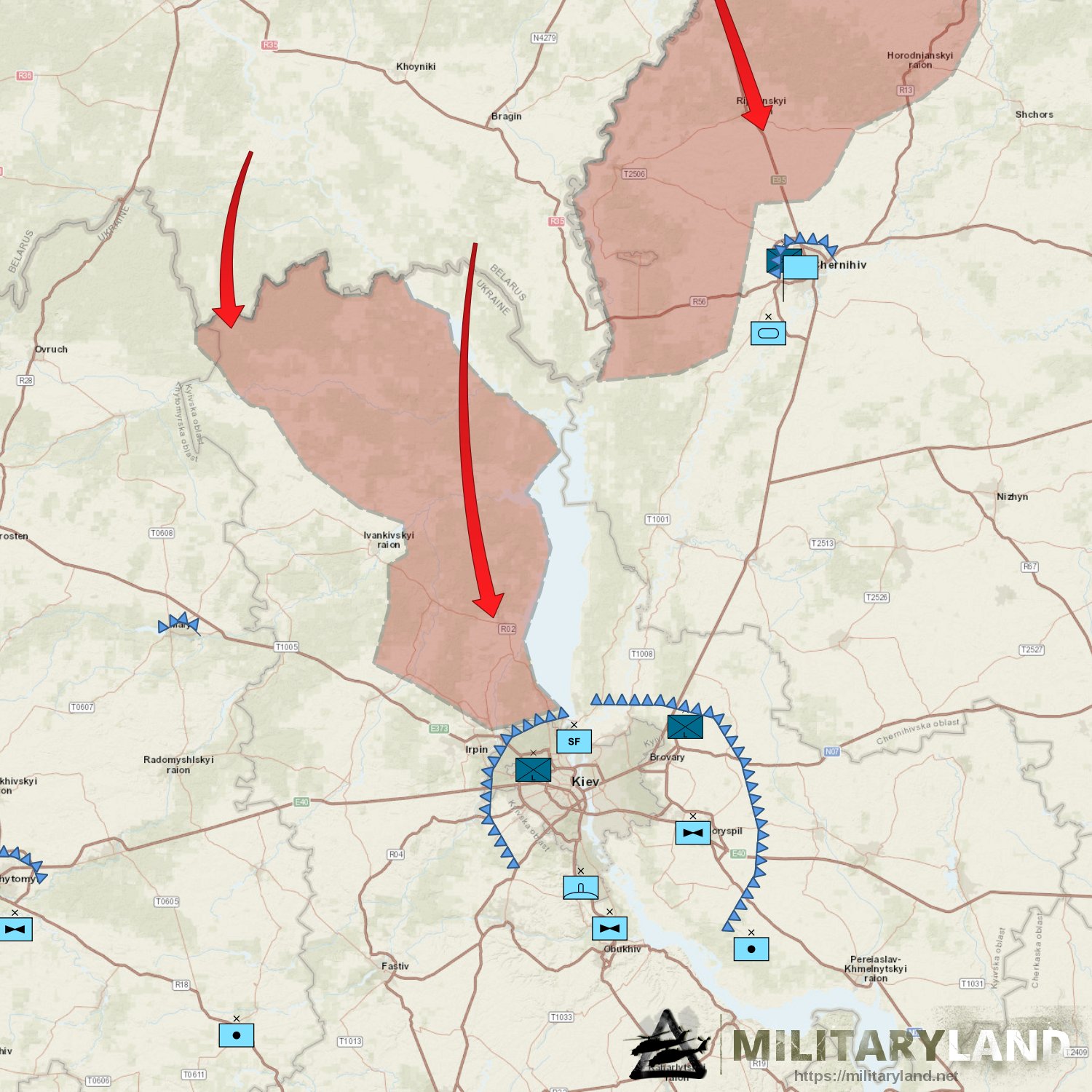 Uuendatud kaart Kiievi rindejoonest, Vene väed liiguvad läbi Tšernobõli Ukraina pealinna suunas…