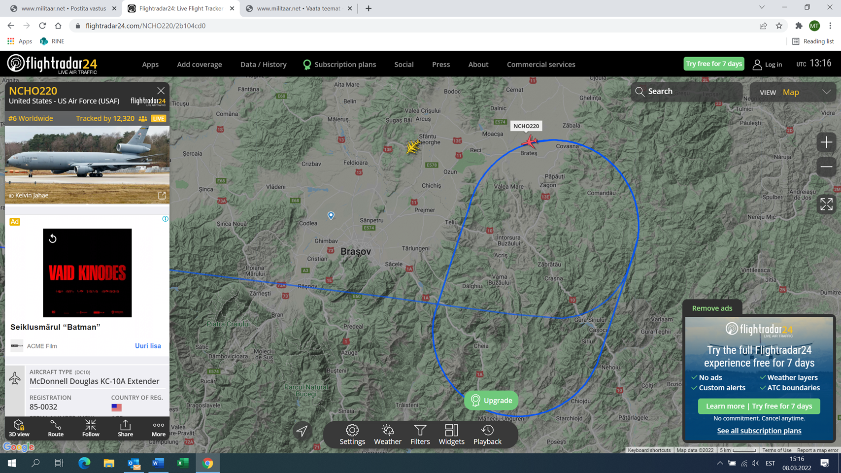 A.T kirjutas:https://www.flightradar24.com/82519/2b102c31Aare72 kirjutas:Ei osanud seda kusagile mujale postitada.
