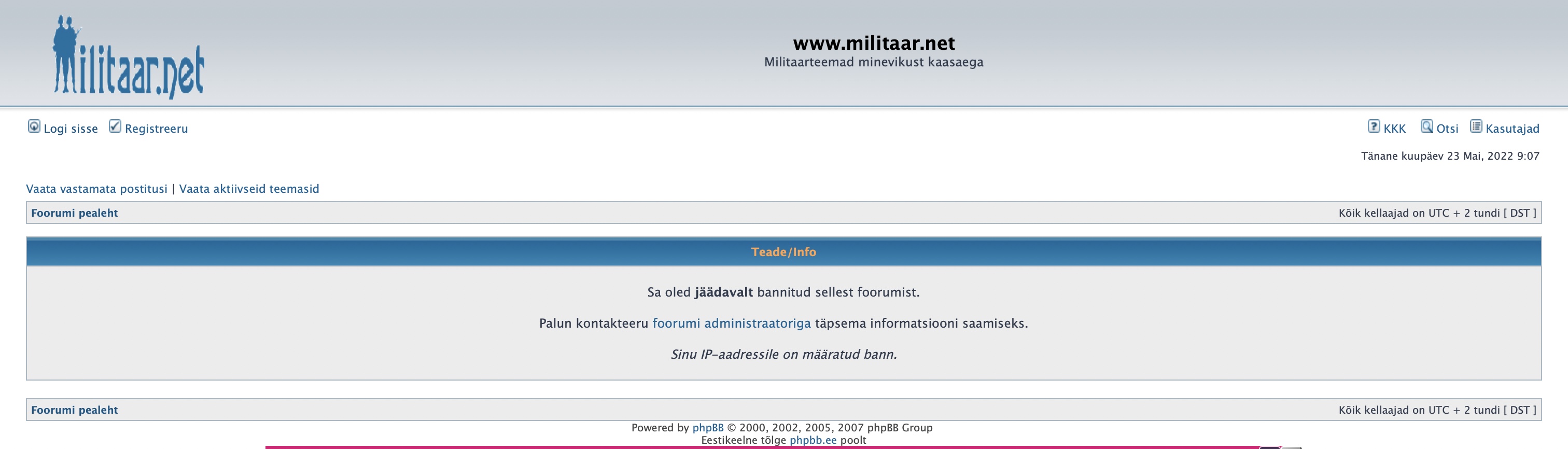 No ei läinud kuud aegagi. Ainult kaks nädalat. Aga praeguseks militaar.net tagasi. Ja jookseb viimase võimaliku phpBB mootori peal.