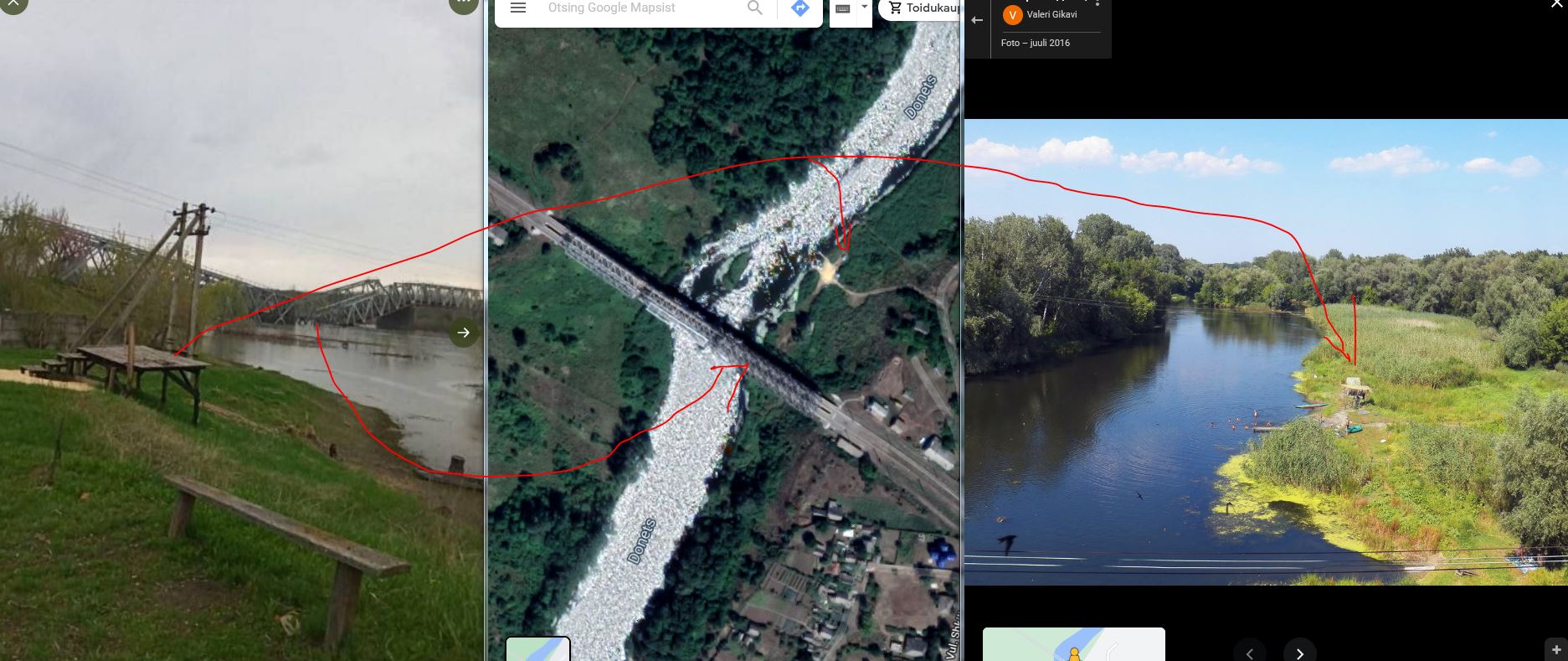 Aga mis on õige asukoht? Ei tea, mõistliku ajaga sobilikku kohta ei leidnud. Viidatud on Severdonetski asumi juures olevale sillale, aga jõgi Seversky Donets (kasutan EN nimesid, ei hakka otsima tõlkeid) on ise 1000 km pikk ja võib olla hoopis mõni teine sild üle selle. Lisaks võib olla üldse viidatud "sever" ehk "põhi" ehk siis Donetskist põhjas ükskõik, milline sild. Ka on võimalus, et pilt on tehtud ükskõik kus mujal.