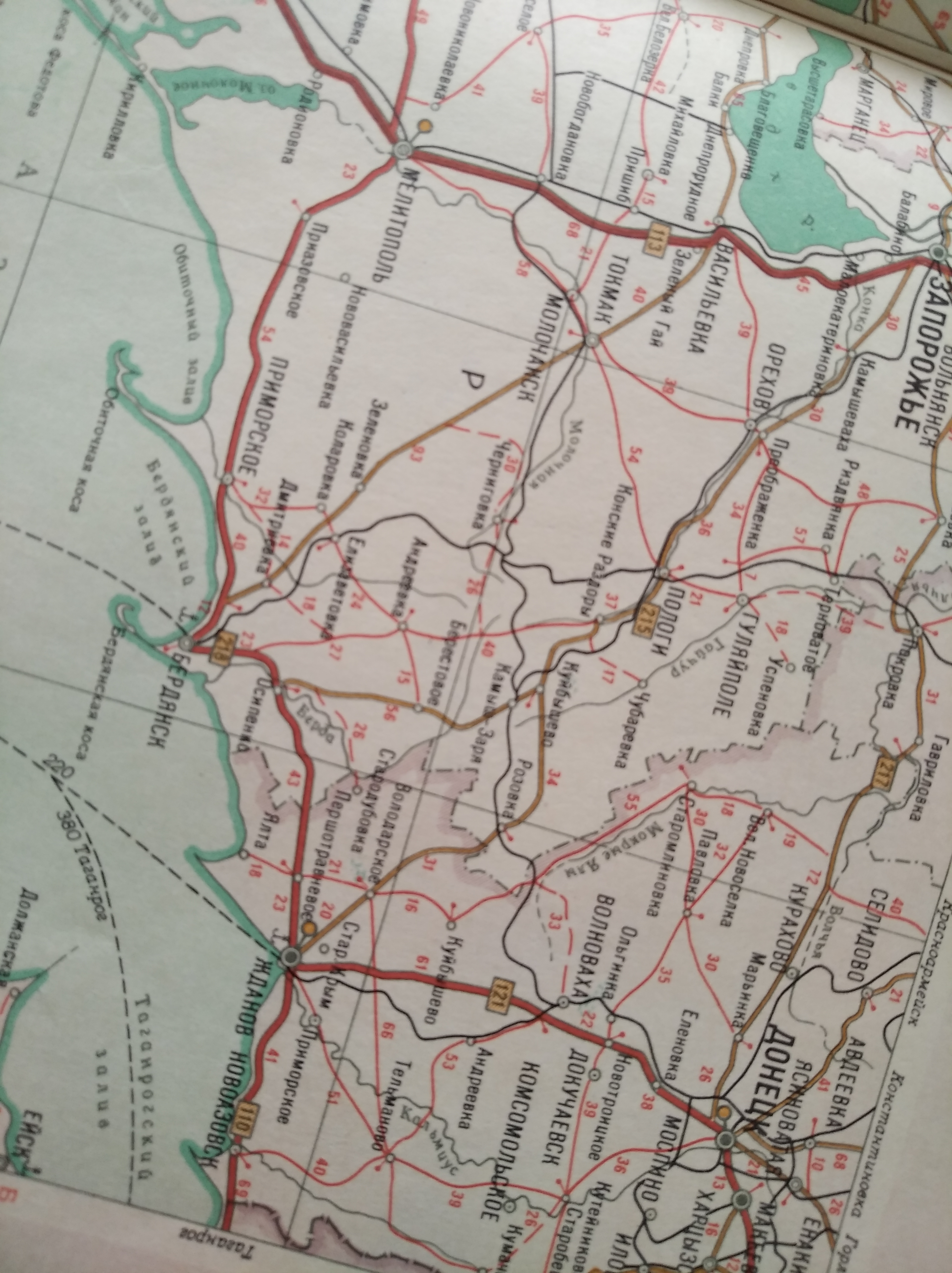 -- lisan kiirvõtte 50a tagusest NLiidu maanteede atlasest (kliki kaardipilti suuremaks, siis läheb õigetpidi) - ümbersõiduvõimalus MARIUPOList paarikümne versta raadiuses oli juba toona täiesti olemas (ja tänapäeval on neid ümbersõiduvõimalusi ilmselt rohkemgi)
