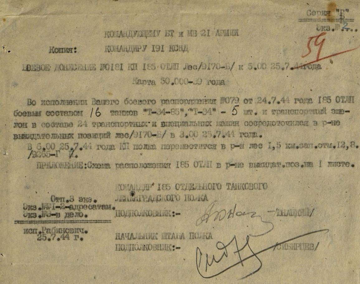 185. üksikus tankipolgus raporteeriti T-34-85 Sinimägede lahingute perioodil.