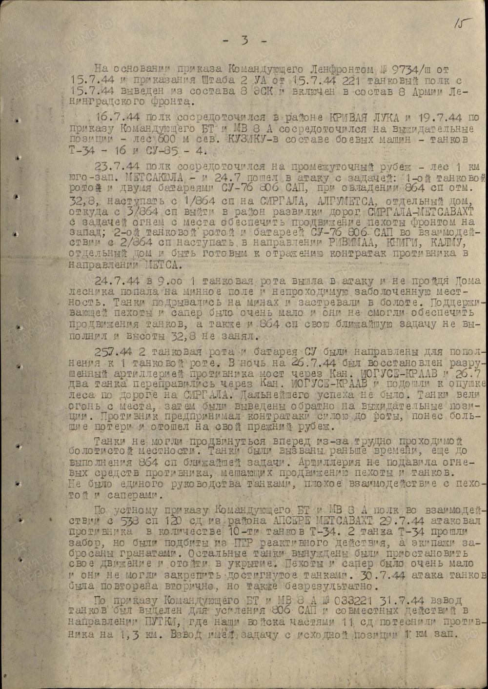 8. laskurkorpuse sõjapäevikust