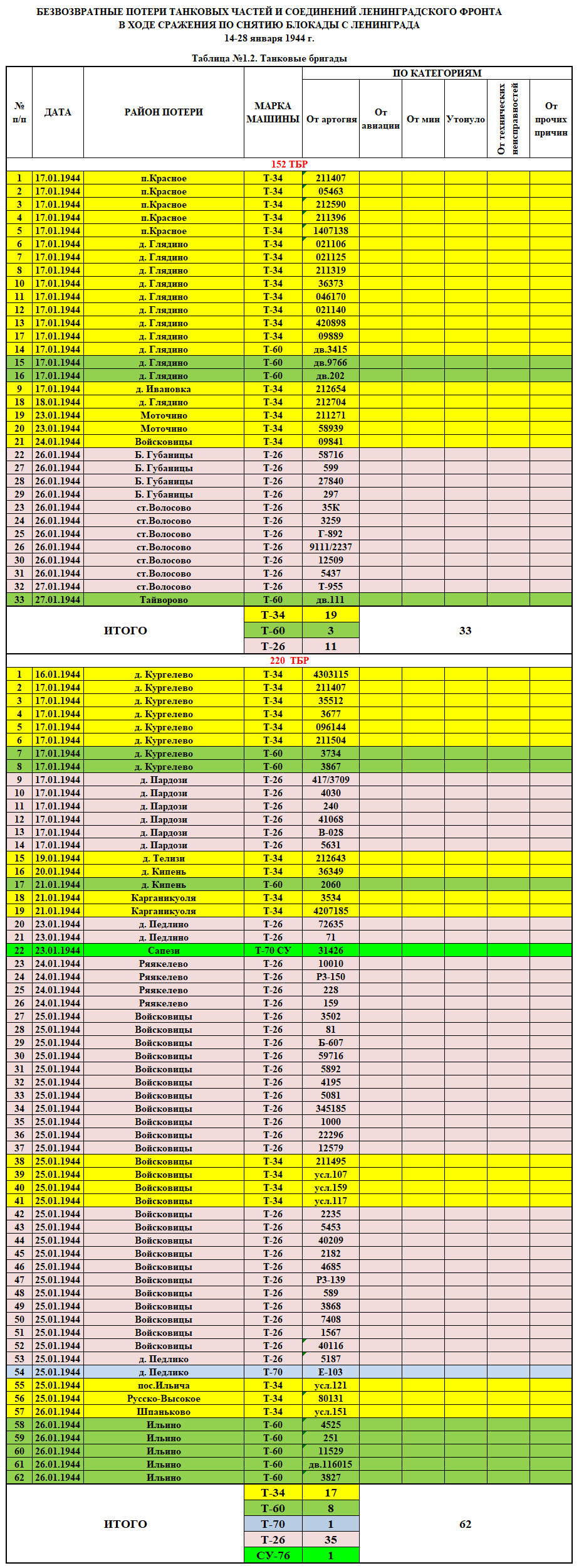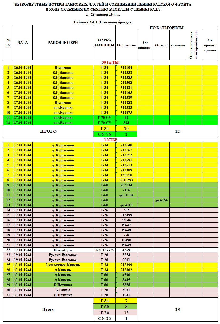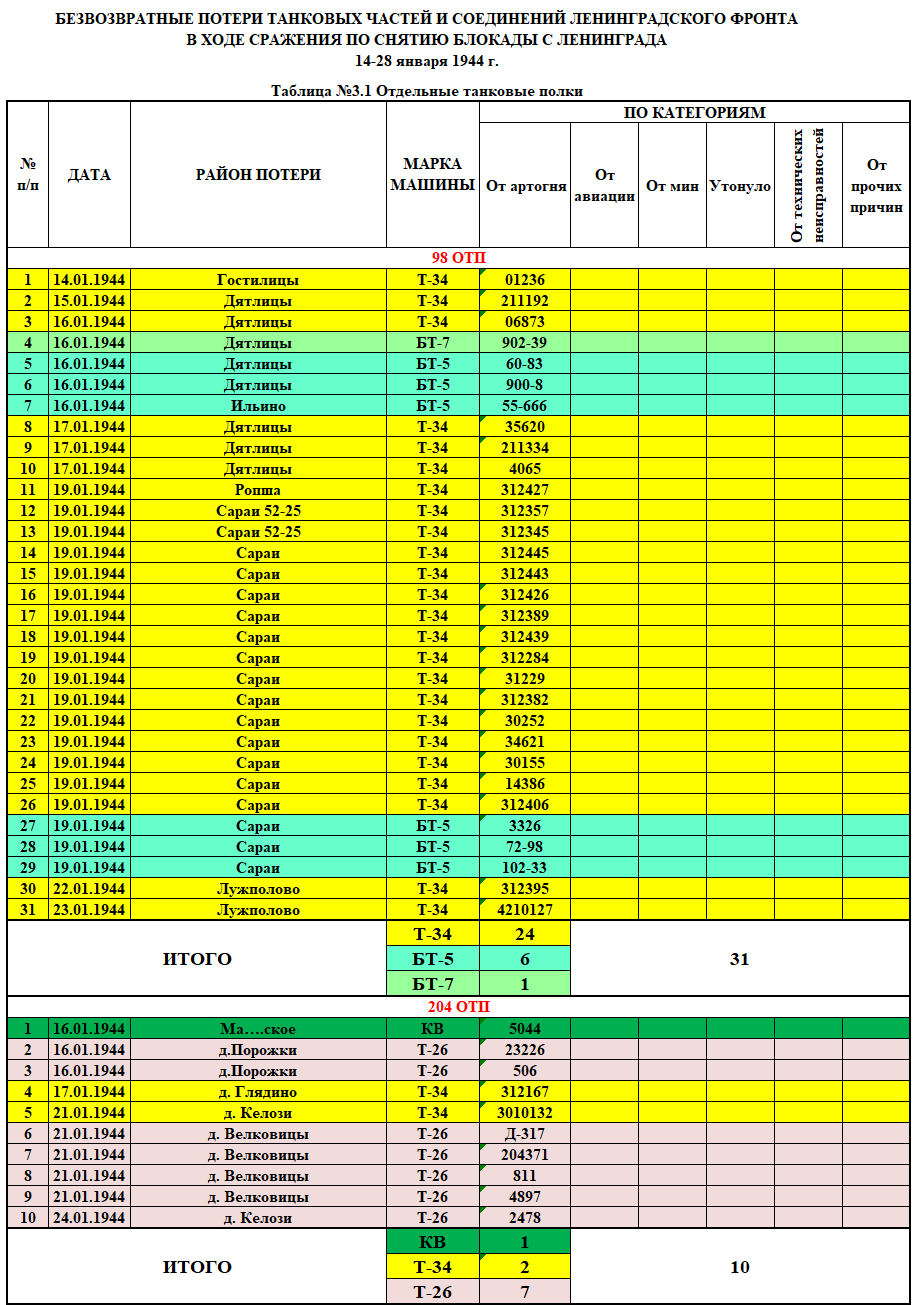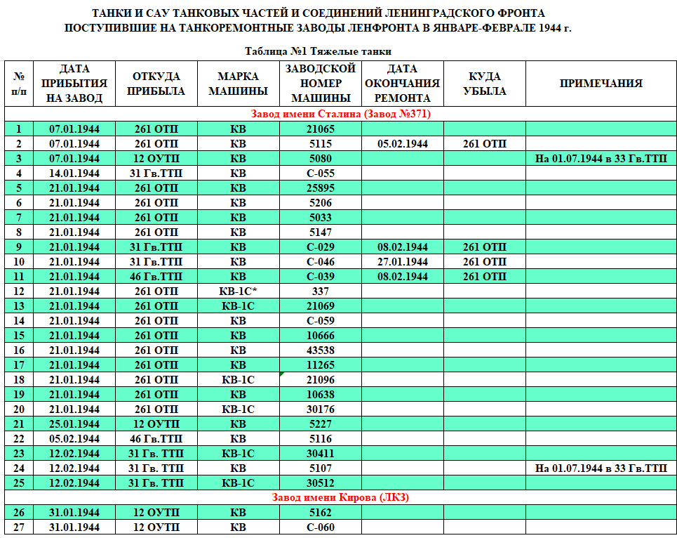 Примечание к таблицам. Танки эвакуированные на танкоремонтные заводы и списанные там за невозможностью восстановления в таблицу не включены.