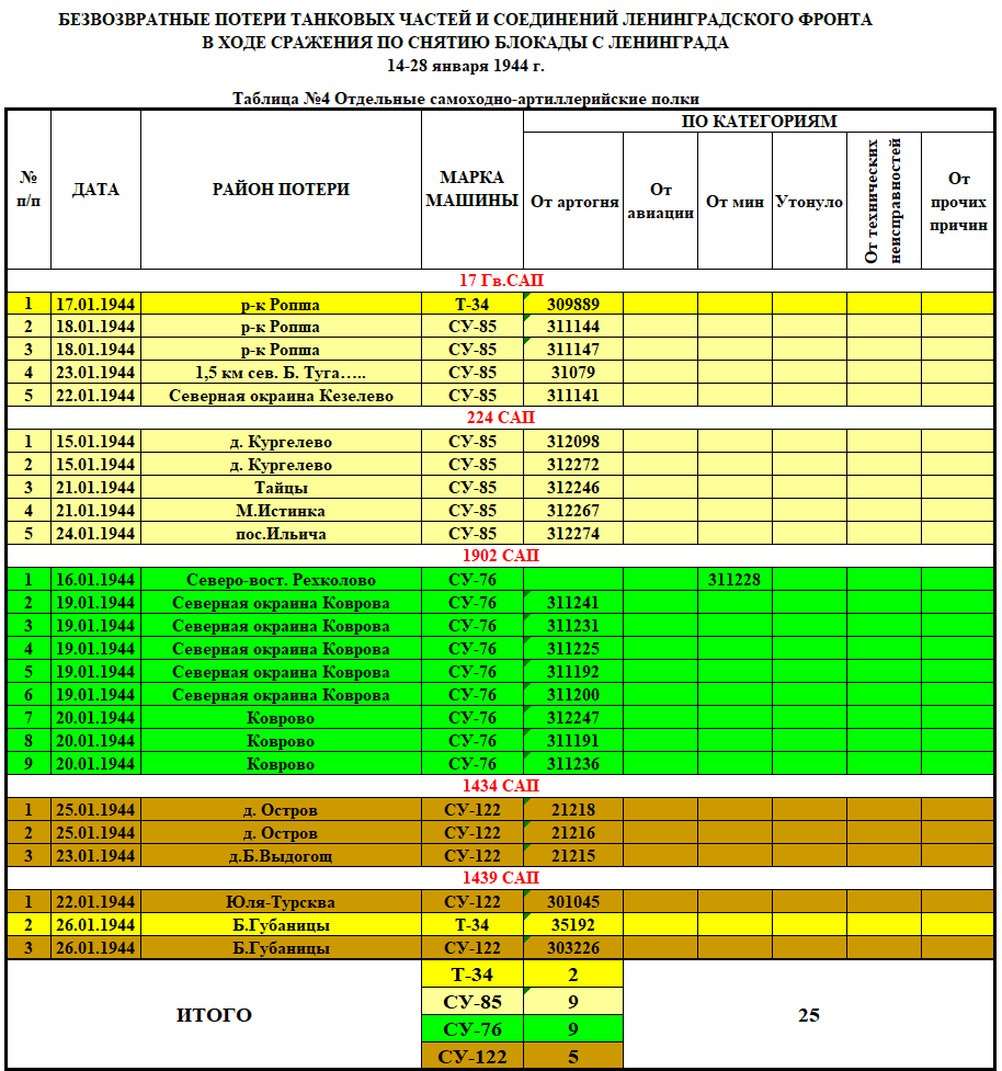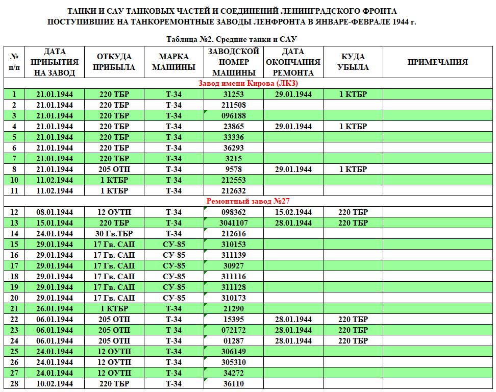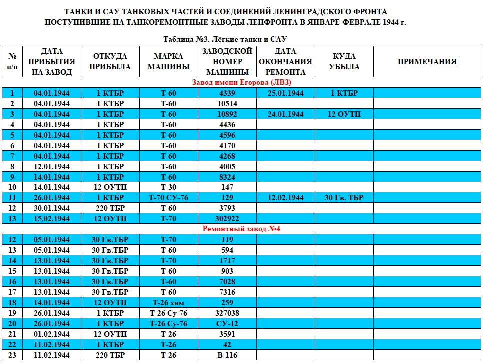 Источник тот же: Книга учета обезличенных танков находящихся в ремонте на рембазах НКО, заводах промышленности и списанных танков не подлежащих восстановлению с 1 июня 1943 г.