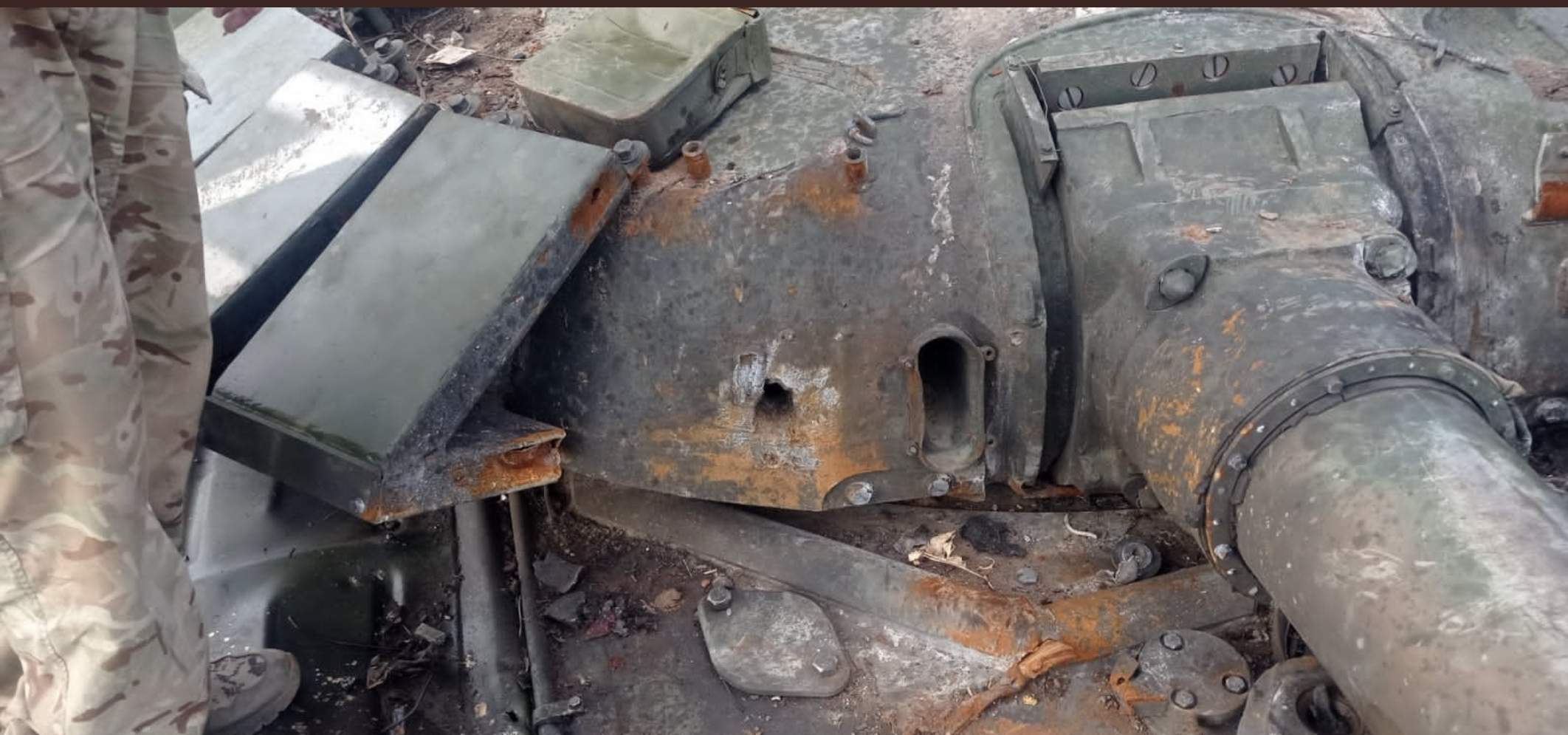 Tundub et T-72B3M torni esisoomusest võeti tandemlõhkepeaga läbi.