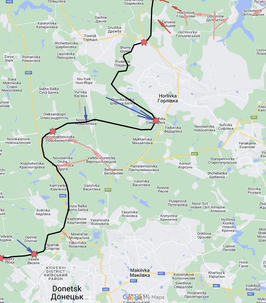 Kaart näitab UA lööki Horlivka ja Donetski vahele!