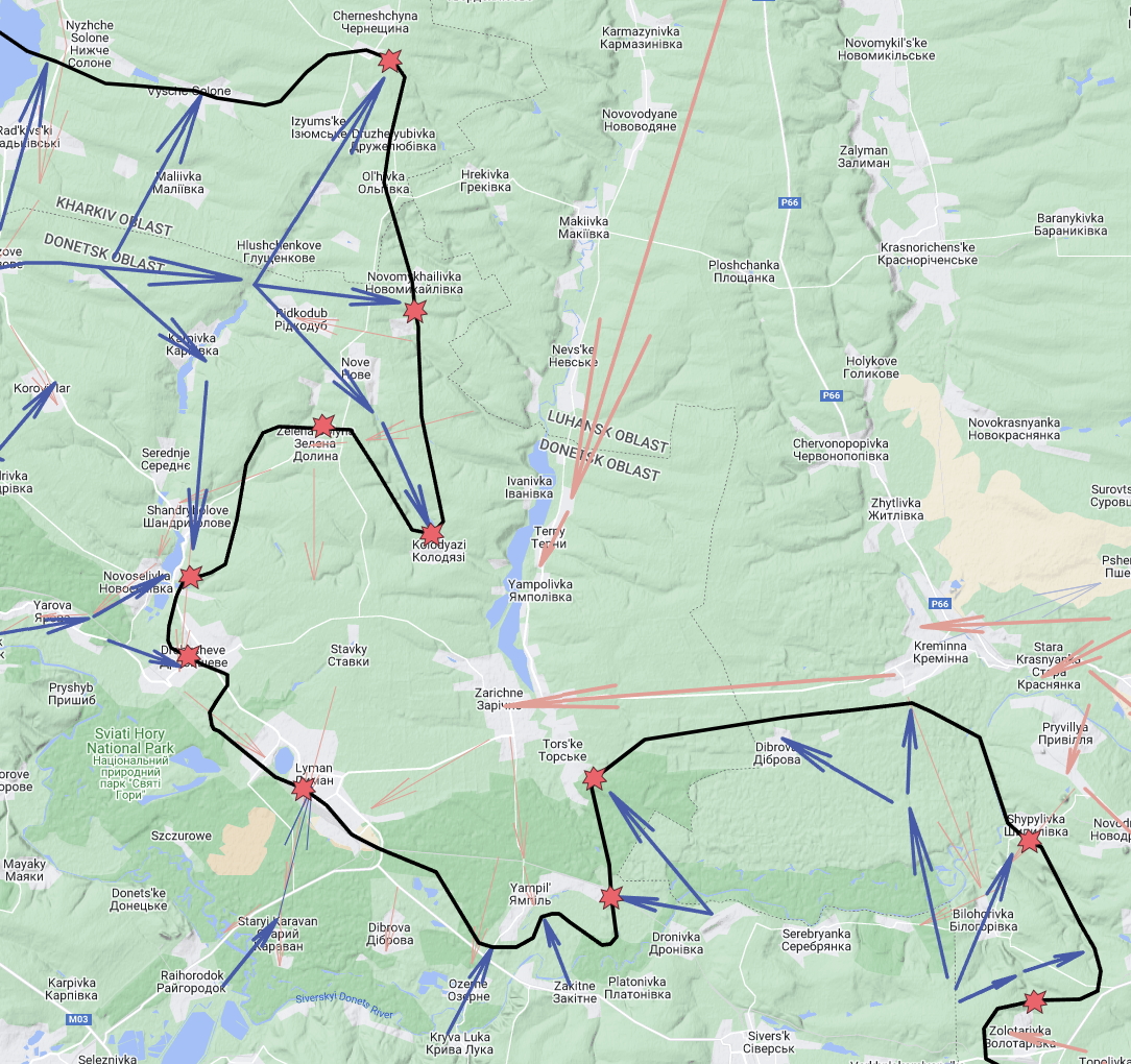 Ukraina relvajõudude peamine eesmärk siin on luua otsene oht meie sideliinidele ja logistikale rindelõigus, sundida Vene Föderatsiooni relvajõude ümberpiiramise vältimiseks lahkuma Yampolist, Krasnõi Limanist ja Drobõševost.