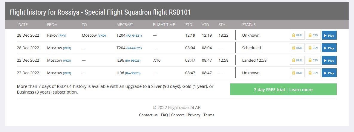 Üks Putini lennukitest ikkagi oli Pihkvas, pöördus keskpäeval Vnukovosse tagasi ja maandus Vnukovos RSD helikopteri Leonardo AW139 julgestuse saatel.