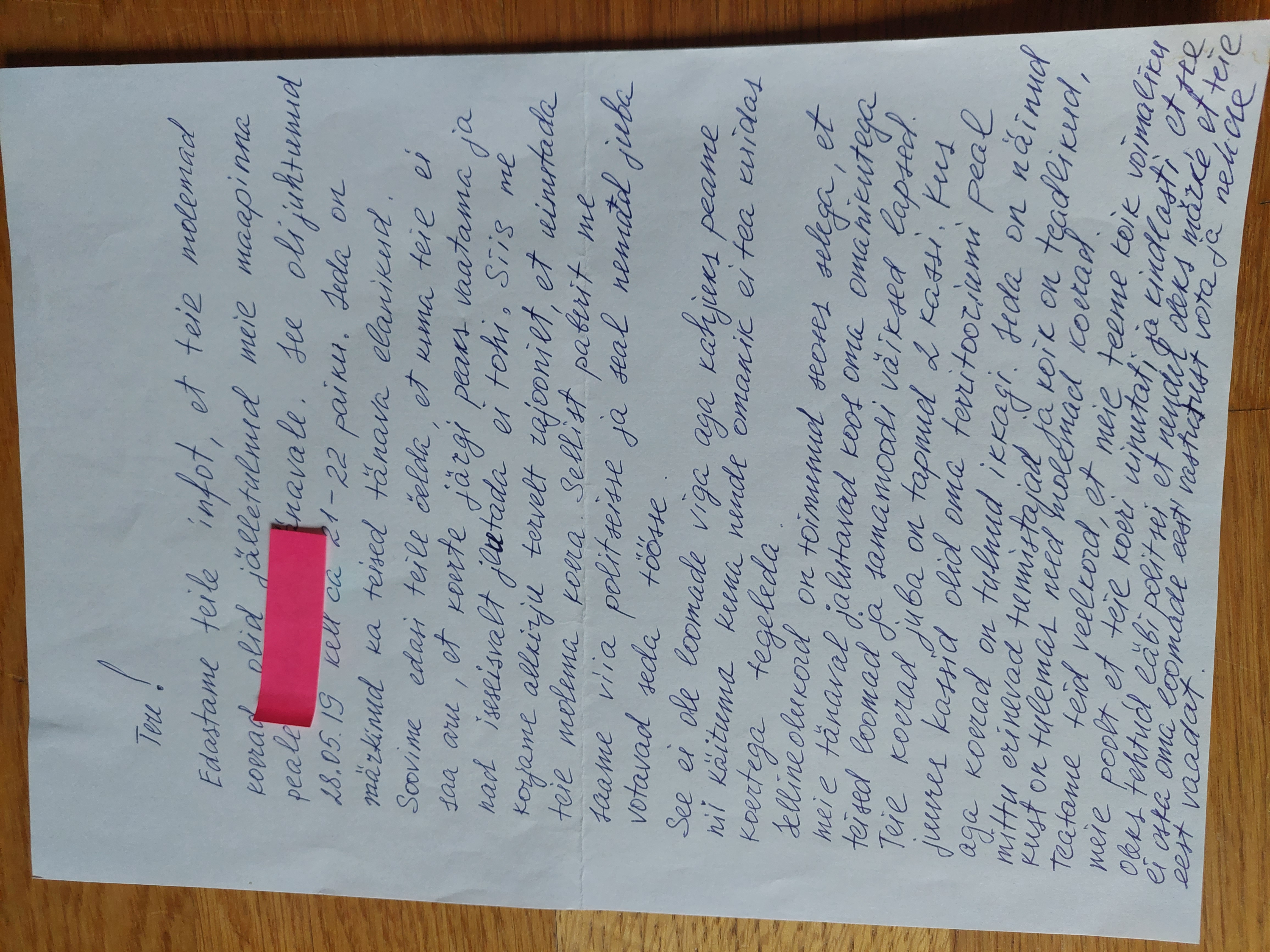 Vahepeal tuli välja, et minu Ventut ja Pontut (üks nimi muudetud) käisid pildistamas mupo peamaja spetsialistid, millest kohalikud ei teadnud mindagi. Ju siis anti avaldused igaks juhuks korraga kahte kohta. Helistati kuhugi, ei midagi. Ja ikka jutt allkirjast ja viimaks ka tööpäva lõpust... ise oleks veel pikalt juurdlusele kaasa aidanud aga uurijad pidid ära minema. Leppisime uue kohtumise kokku.