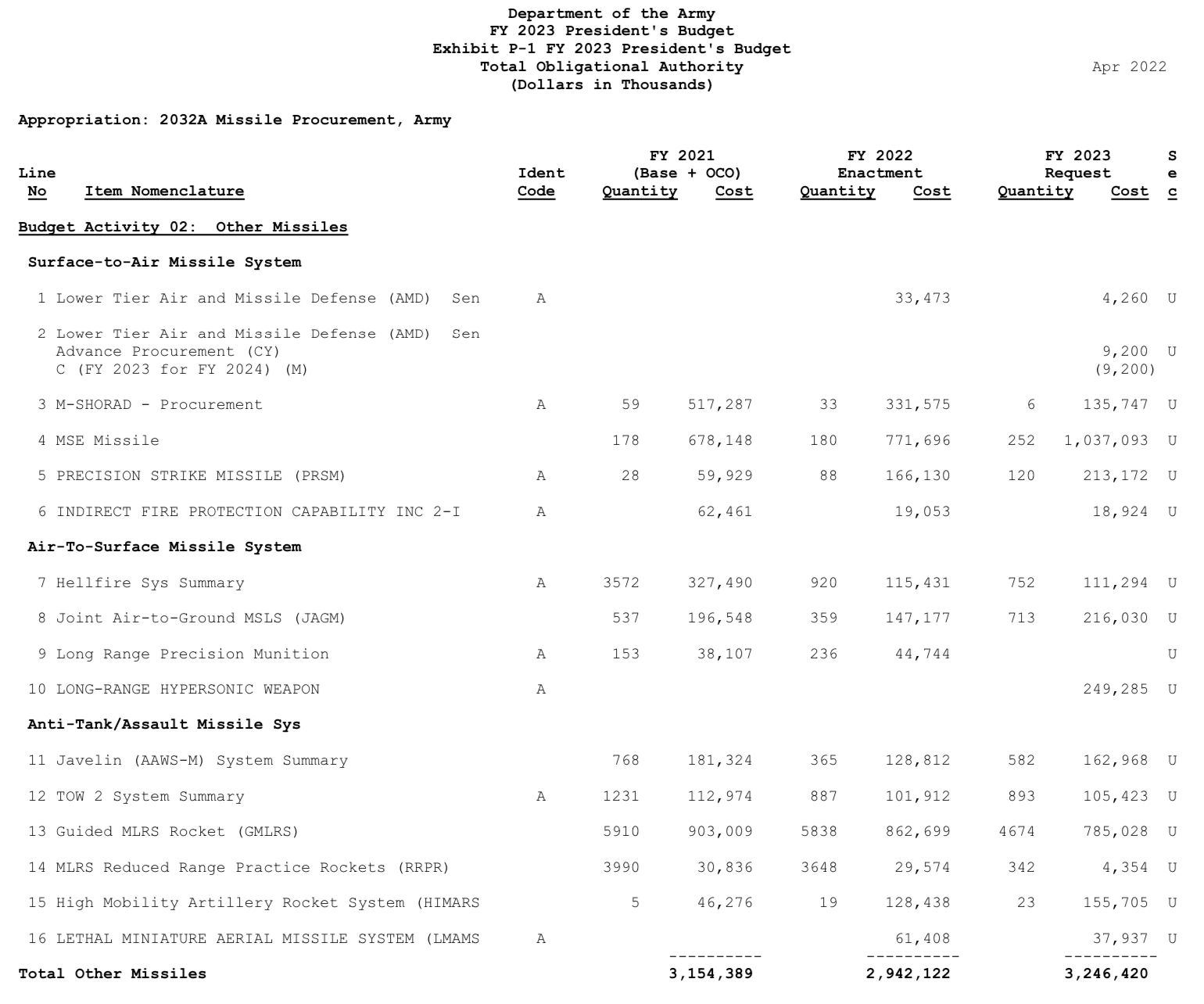USA on peamine abistaja. Võib-olla pakuvad huvi rakttide hinnad ja mahud 2023. aasta kaitse-eelarves. Lingi all lahatakse neid hindasid veel peenemalt.