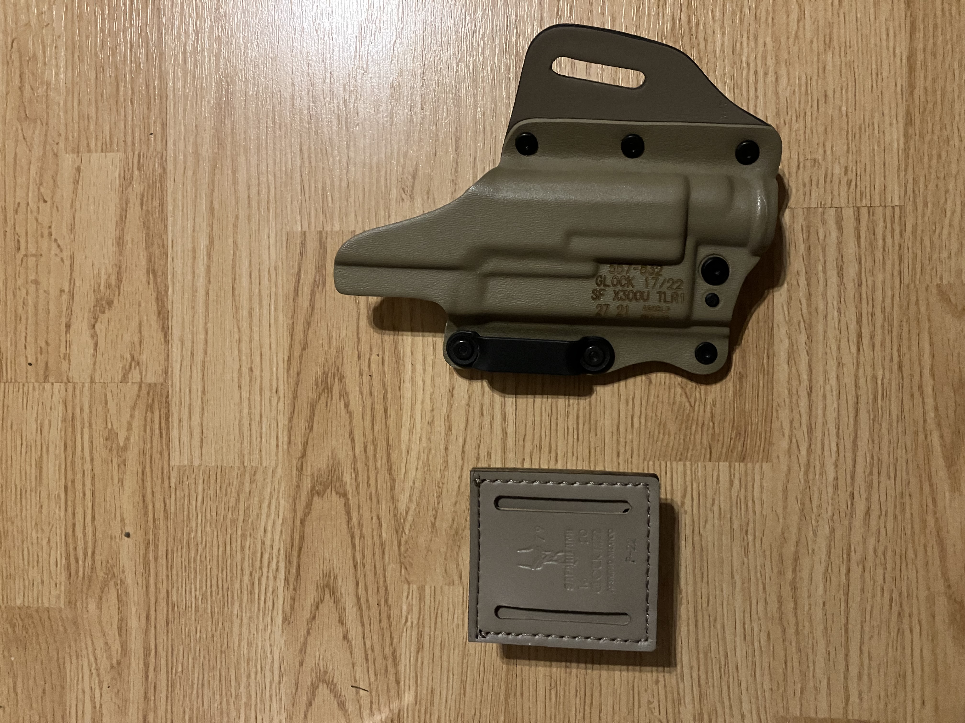 Müüa UUS komplekt = kabuur + topelt salvetasku Glock 17 (aga ka Glock 19) relvale. Kabuuri asetsetav relv peab olema koos Surefire X300 või Streamlight TLR-1 relvalambiga.