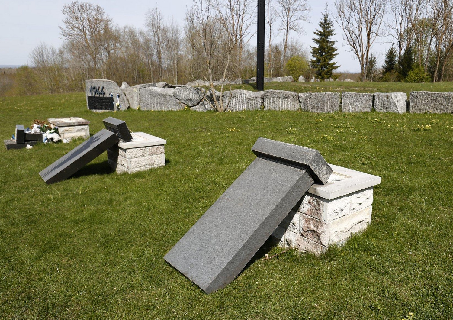 Kolme memoriaali alal on lõhutud hauatähiseid ja lambiposte.