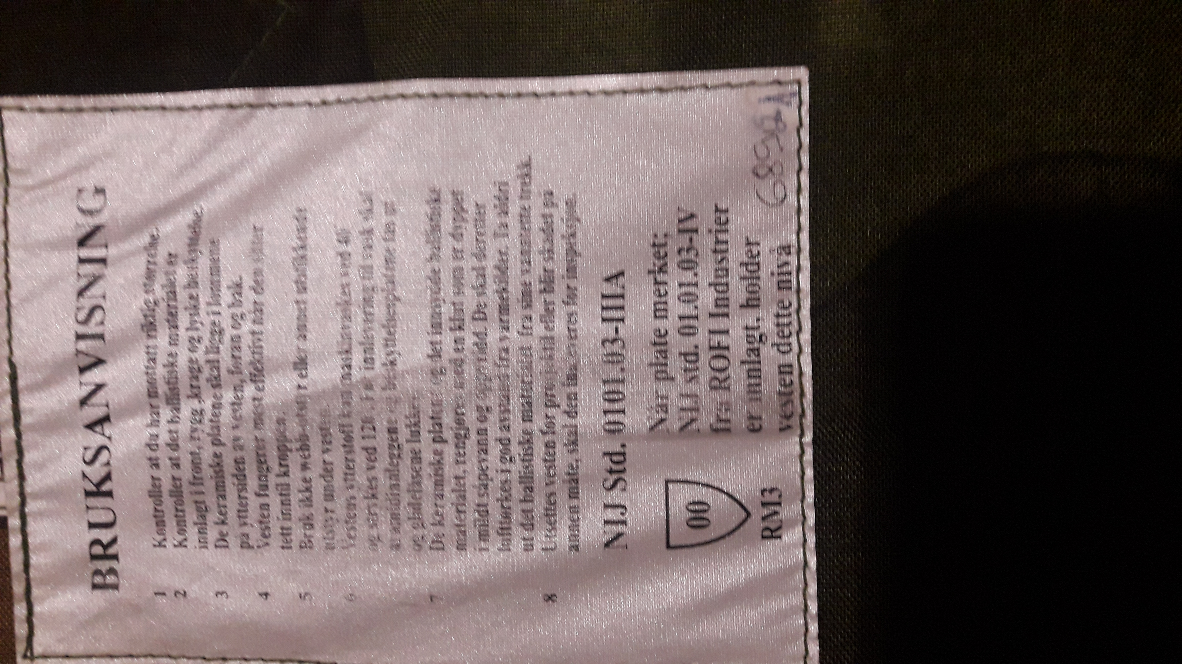 Akf Trumm, omades käesoleval hetkel eelpool kirjeldatud vesti, võin öelda seda, et vestis olevad plaadid ei ole mingid hiinakad vaid Norra riigi poolt koos vestidega ostetud plaadid.