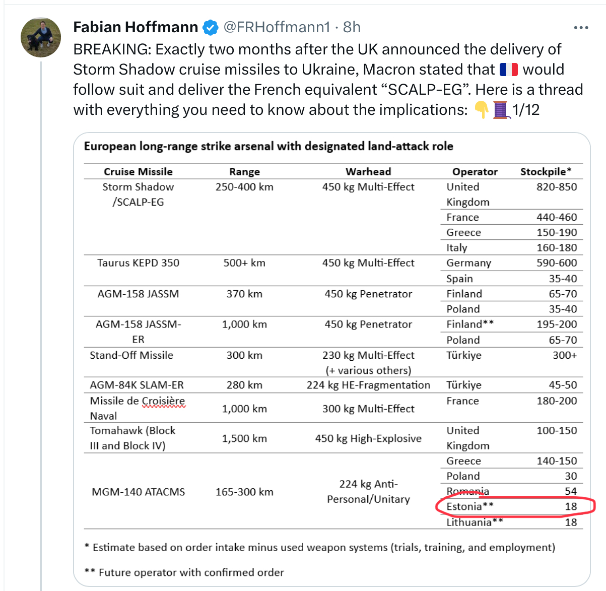 Ma ei mõista, miks on seda ATACMSi olemasolu kuskilt mujalt vaja avastada, kui ametlikest pressiteadetest. Kui me oleme öelnud, et HIMARSiga saame tabada sihtmärke enam kui 300km kaugusel, siis millega me veel oleks seda teinud?