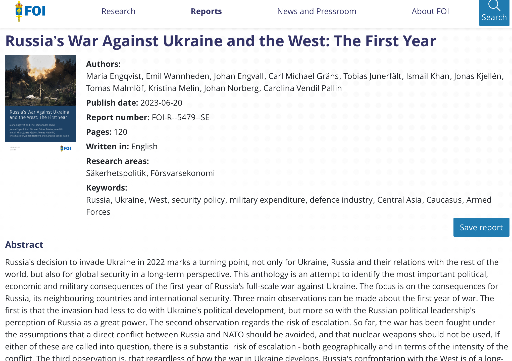 Pikk Rootsi FOI raport Ukraina sõja kohta.
