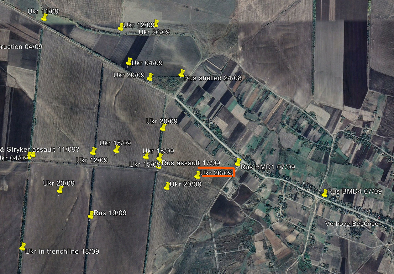 Geolokatsiooniga kaadrid näitavad, et Ukraina soomukid murdsid mõnes lõigus läbi tankitõrjekraavide ja draakonihammasteks kutsutavateks püramiidikujulisest betoontõketest. 21. septembril avaldatud geolokatsiooniga kaadrid näitavad veel, et Ukraina väed tungivad edasi Verbovest lääne ja edela suunas.