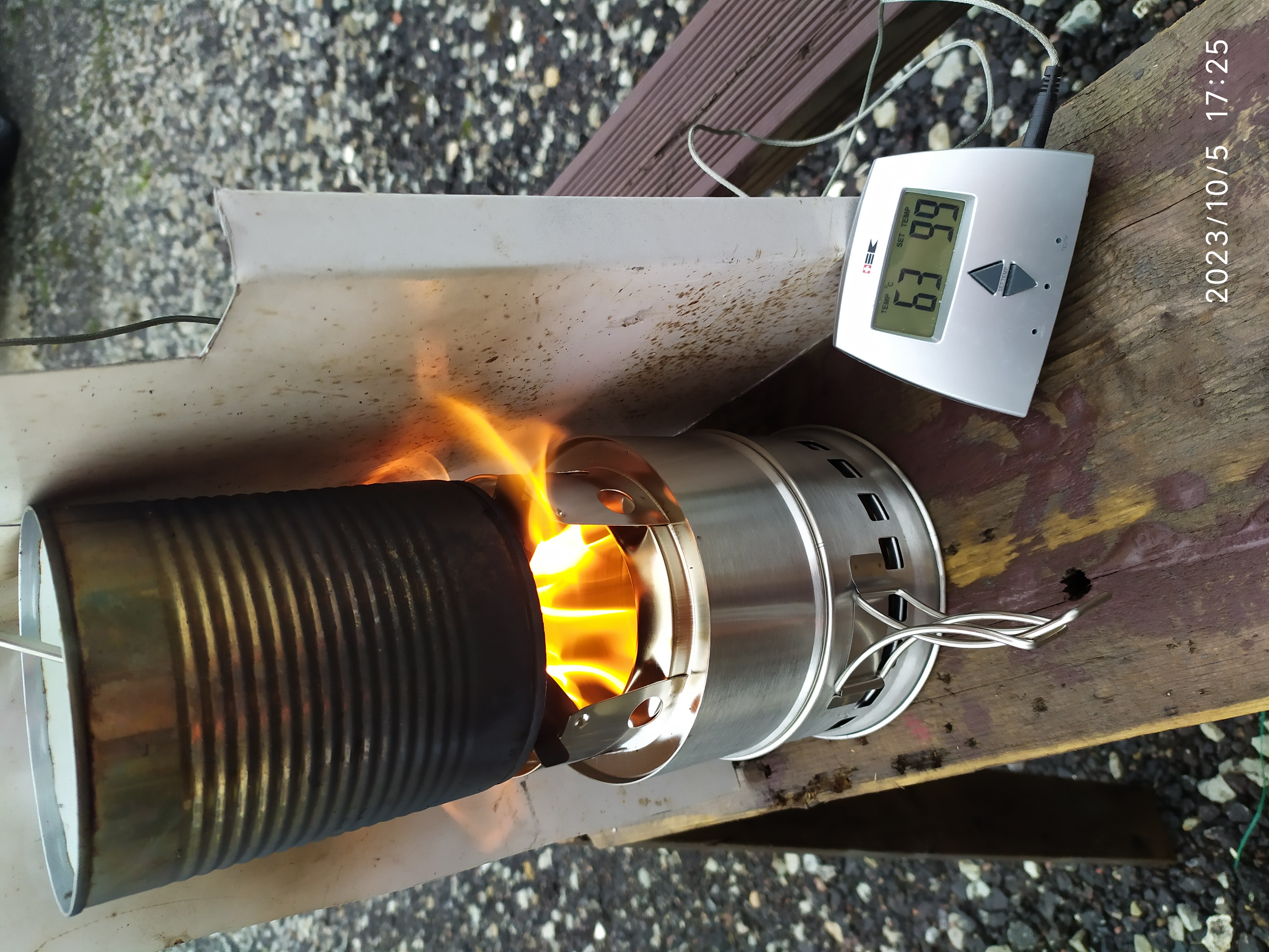 Selline Alist tellitud roostevaba , lisaõhu eelsoojenduskanaliga matkapliit suutis 8cm pikkuse toolijala jupiga (puidu kaal 89gr), 0,5L vett ilusti keema ajada.