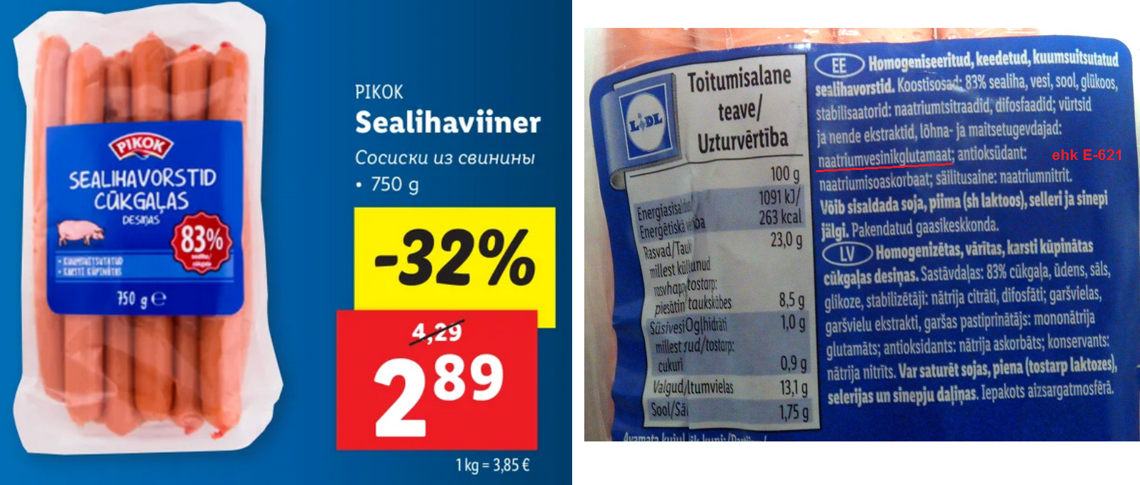 Ülal toodud Saksa ja Horvaatia toodete hinnaklass on meil nt. sellise koostisega toodetel: