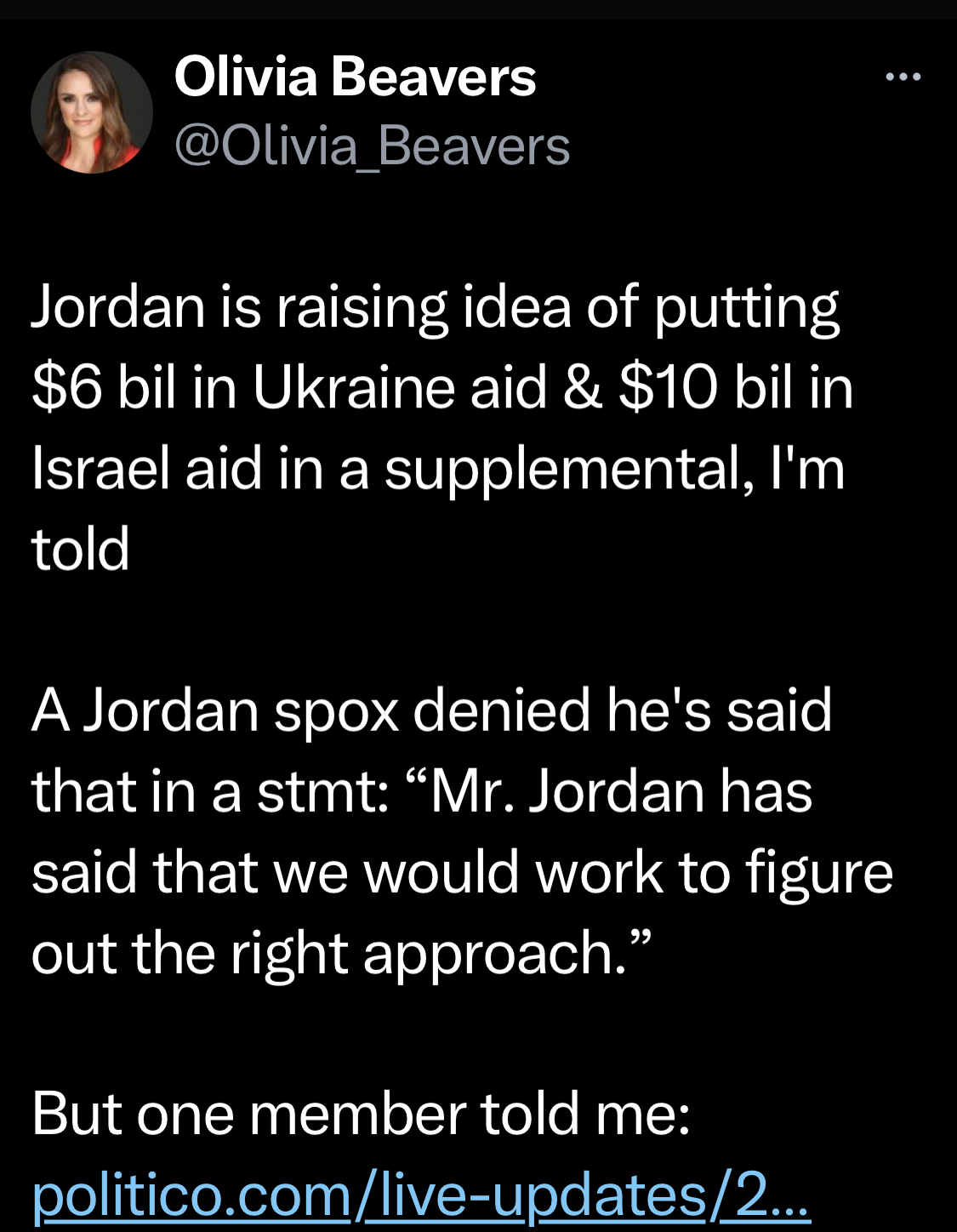 Oh p...e. Scalise ei kandideeri ning järgi on paar võimaliku kandisaati, kes on Ukrainale abi andmise vastu. Samas yks neist, Jordan, ei tea kas kandideerib, sest teda ei toeta jälle pea pool vabariiklasi. Ehk asi segane.