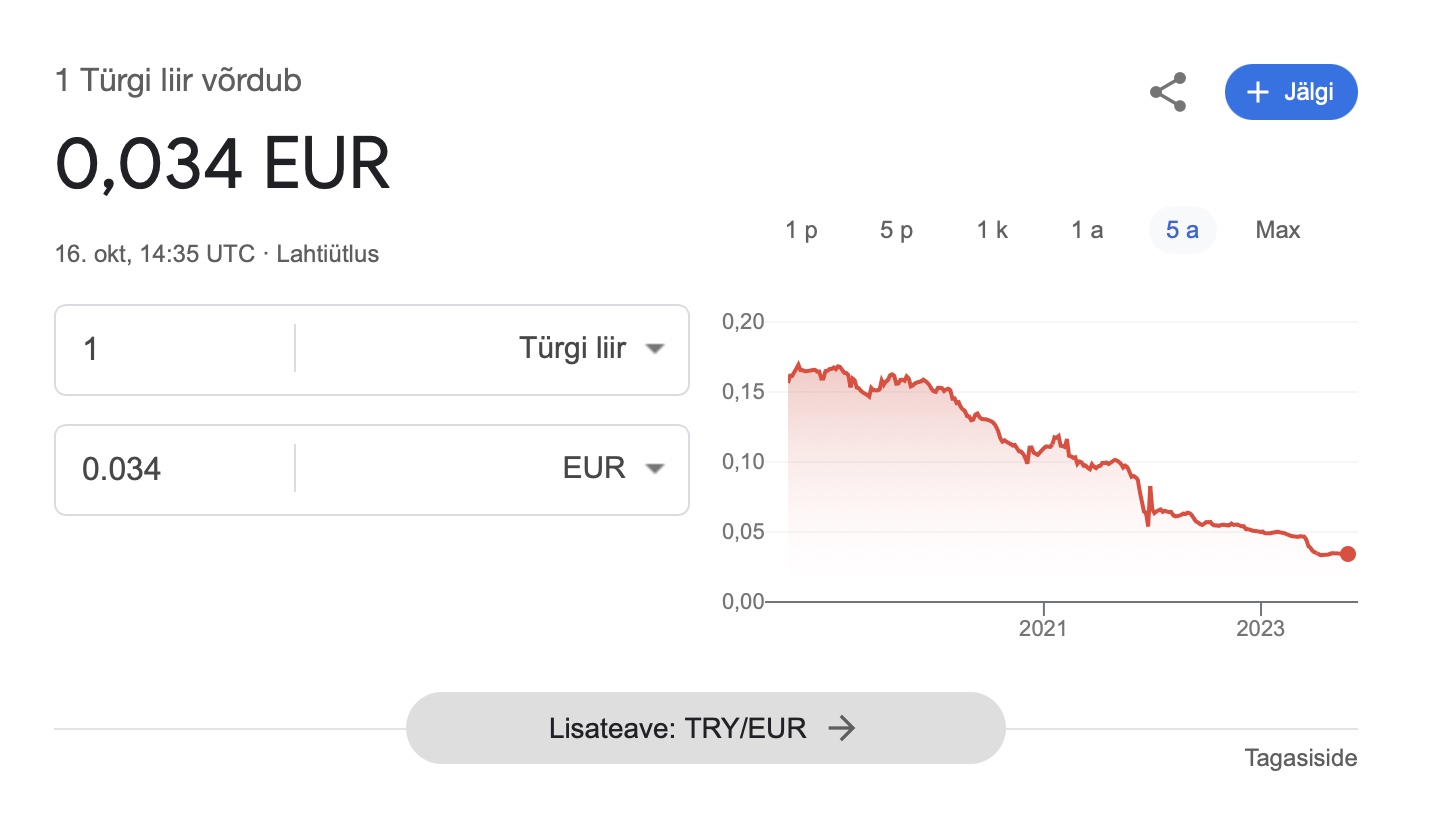 Tänased hinnad on tänased st. vabalt võib inflatsioon nüüd Türgi kauba USA varasemaga ühte hinda tõsta aga täna oleks USA kaup ikka Türgi omast 20-40% kallim.