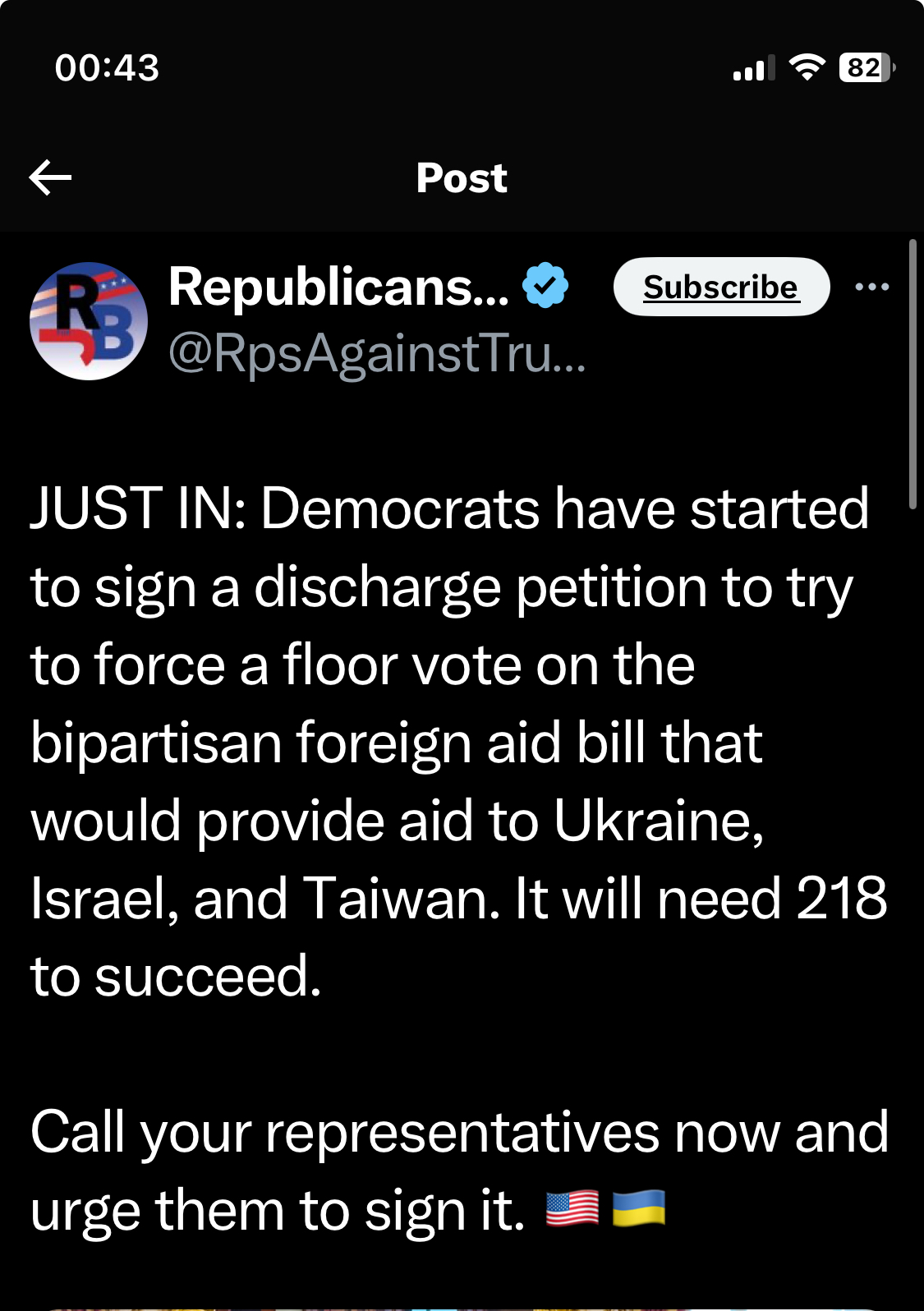 Esindajatekojas algas allkirjade kogumine, et saaks moskva mike'i blokeeringust mööda minna. Kui kõik demokraadid annavad allkirja siis vaja veel 5 vabariiklase allkirja. Samas võivad ka mõned demokraadid ära kukkuda, need kes ei poolda Isrealile abi andmist.