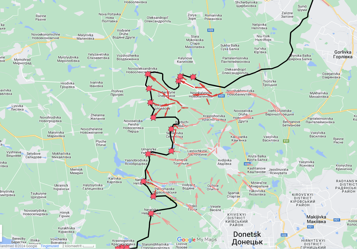 - Avdiyivkast läänes ja edelas rindejoone osas kinnitatud muudatusi ei ole.