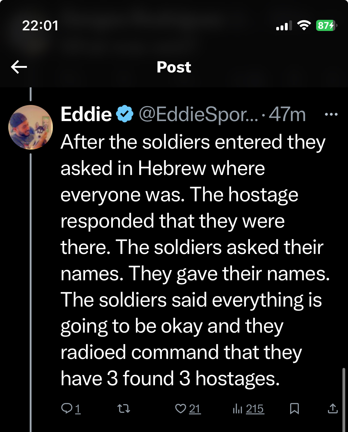 TLDR: Hamas hoiab pantvange oma toetajate erakorterites ja liigutab neid pidevalt ringi. Lisaboonus Hamasi jaoks siis eelnev nutulaul, kui needsamad omast vabast ajast pantvange pidavad eraisikud, kelle igasugune seos Hamasiga on selgelt pahatahtlik ja meelevaldne, IDF rünnakutes ise pihta saavad.