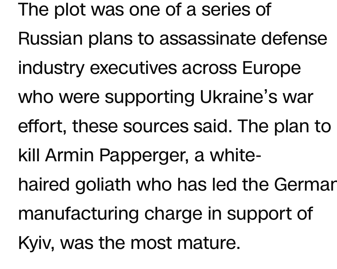 Vatid tahtsid tappa Rheinmetalli juhatuse esimeest. USA sai vastava info mida jagas sakslastega ja katse hoiti ära. Väidetavalt on see värskeim vattide katse tappa Ukrainat toetavate kaitsetööstuse juhte. Seega mitte ainus
