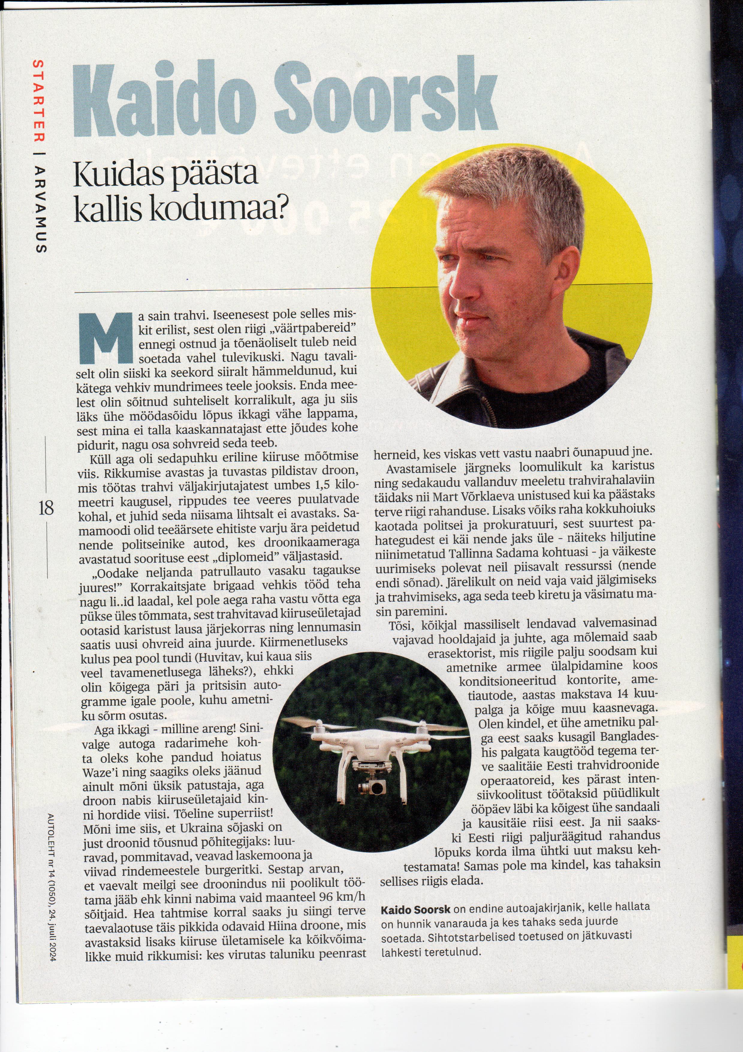 Ma tahaks väga teada, kuidas ikka see droon seda kiirust mõõtis?Kapten Trumm kirjutas: ↑01 Aug, 2024 11:04 Endine autoajakirjanik Kaido Soorsk automehe arusaamast trahvide, mendiameti ja muu taolise teemal.