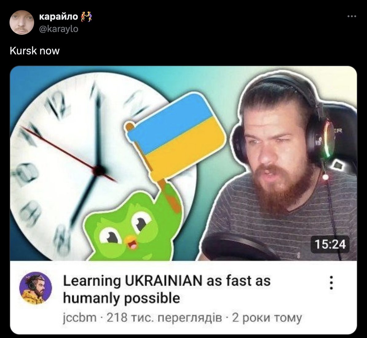 https://x.com/akihheikkinen/status/1822180468432752873Man in Kursk region hears fighting closing in, quickly googles up lyrics, opens window and starts singing .. the Ukrainian national anthem!
