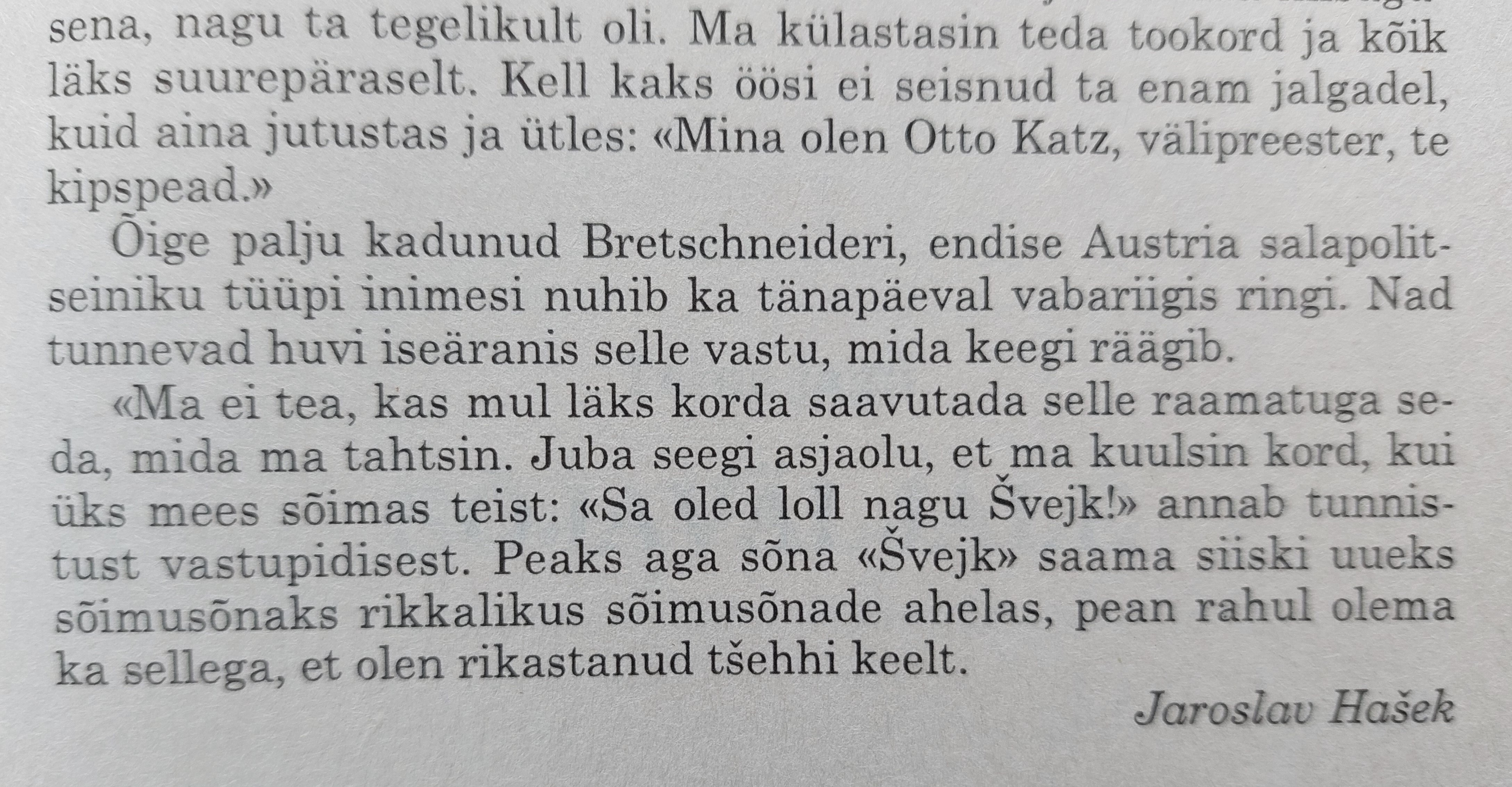 Läks see seeria nüüd asja ette, või jäi see pelgalt minu enda kapriisiks ja tühja-tuult-tallates kulutatud ajaks, eks sellele annavad hinnangu juba ajalugu ja lugejad. Ja tagasi vaadates neile kirjatükkidele just sellele viimase lause valguses panen siia pildi Jaroslav Hašeki järelsõnaga oma Šveiki esimesele osale: