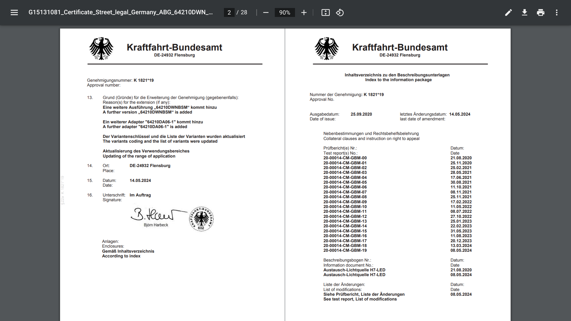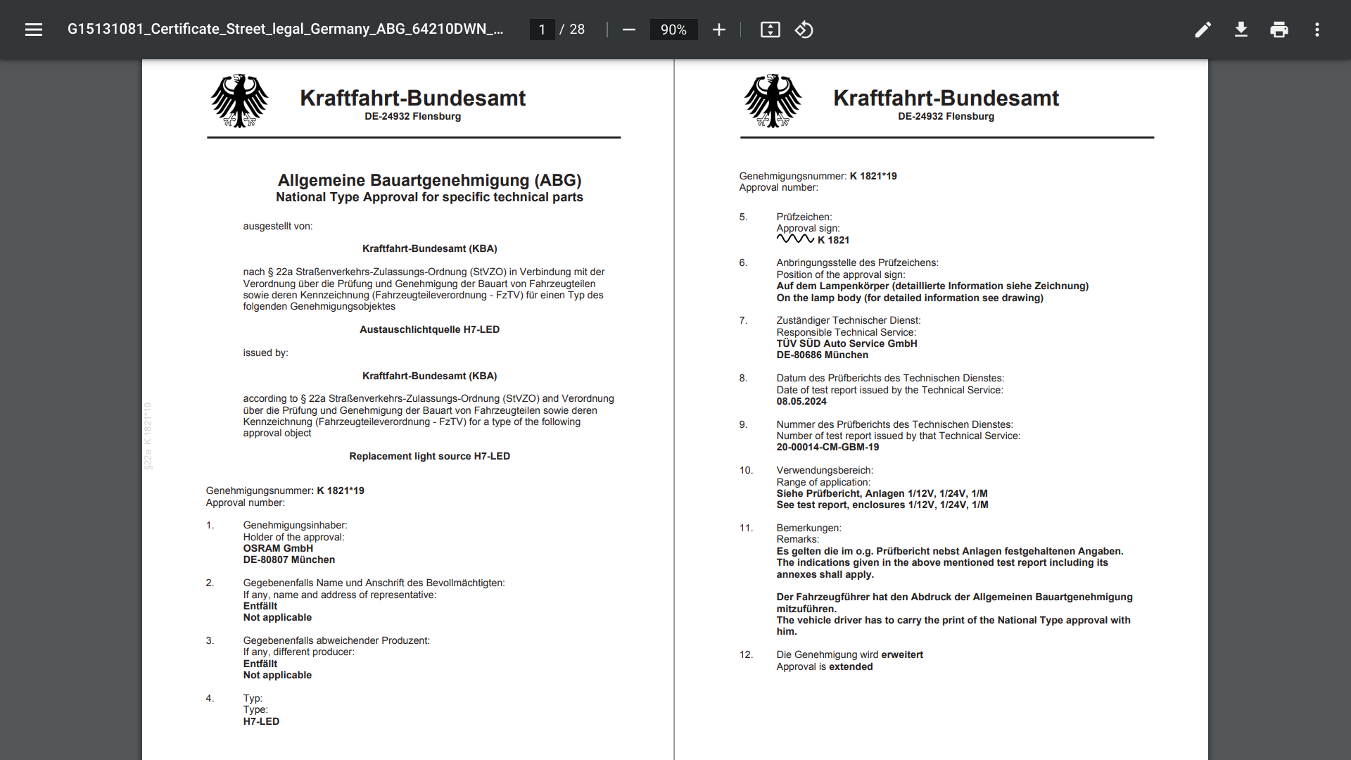 Orsami H7 LED Saksa TÜV kinnituse 2 esimest lehte, kokku 28 lehest: