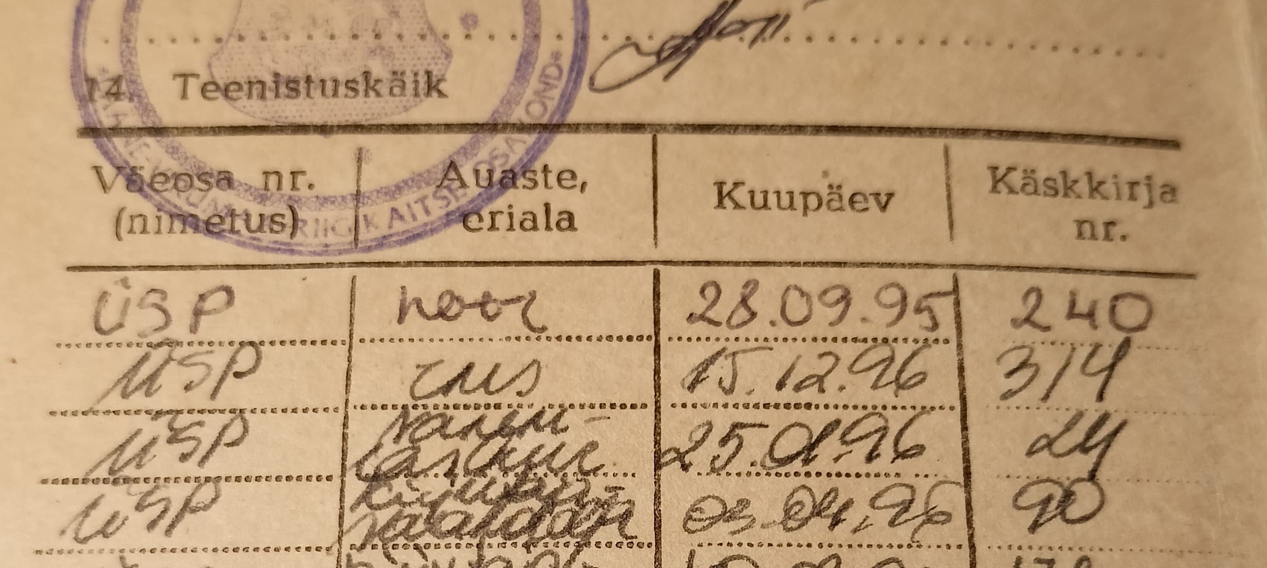 Sellisel juhul tegutses Üksik-Sidepataljon aastail 1995-1996 väljaspool vabariiki. Väljavõte minu tegevteenistuse arvestuskaardilt:Veiko Palm kirjutas: ↑09 Dets, 2024 13:48 Päris huvitav küsimus ja tegin natuke otsimistööd nii seadusandluses, kui ka enda mälus.
