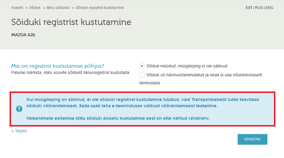 Nõustud, et sõidukit arvele tagasi ei saa ja kui sõiduk päriselt ikka olemas on, saad trahvi.