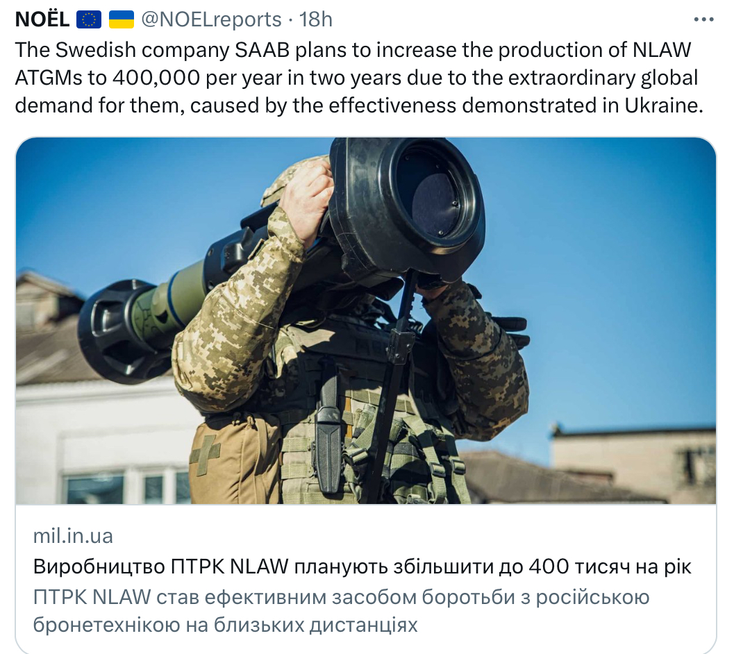 ruger kirjutas:Ukraina siis saanud üle 2000 NLAW raketi UK-st.