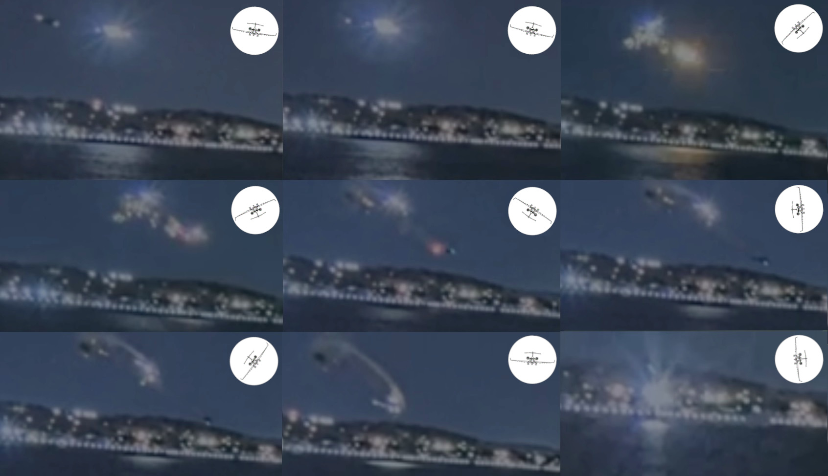 Pange tähele, et mõlema õhusõiduki tuled särasid pärast kokkupõrget edasi (va. kopteri sabarootori juures olev tuli, mis purustati kokkupõrkes koos saba ülemise otsaga), mis poleks vast võimalik, kui oleks toimunud kere-kerega kokkupõrge. Isegi kopteri sabal ja kere all olevad strobotuled vilkusid pärast kokkupõrget edasi (kollaaži keskmisel kaadril punakas sabastrobo sähvatus), vaatamata sellele, et tiivaga kokkupõrkes hävines sabarootor koos saba kogu ülaosaga (horisontaalstabilisaatorid jäid terveks).