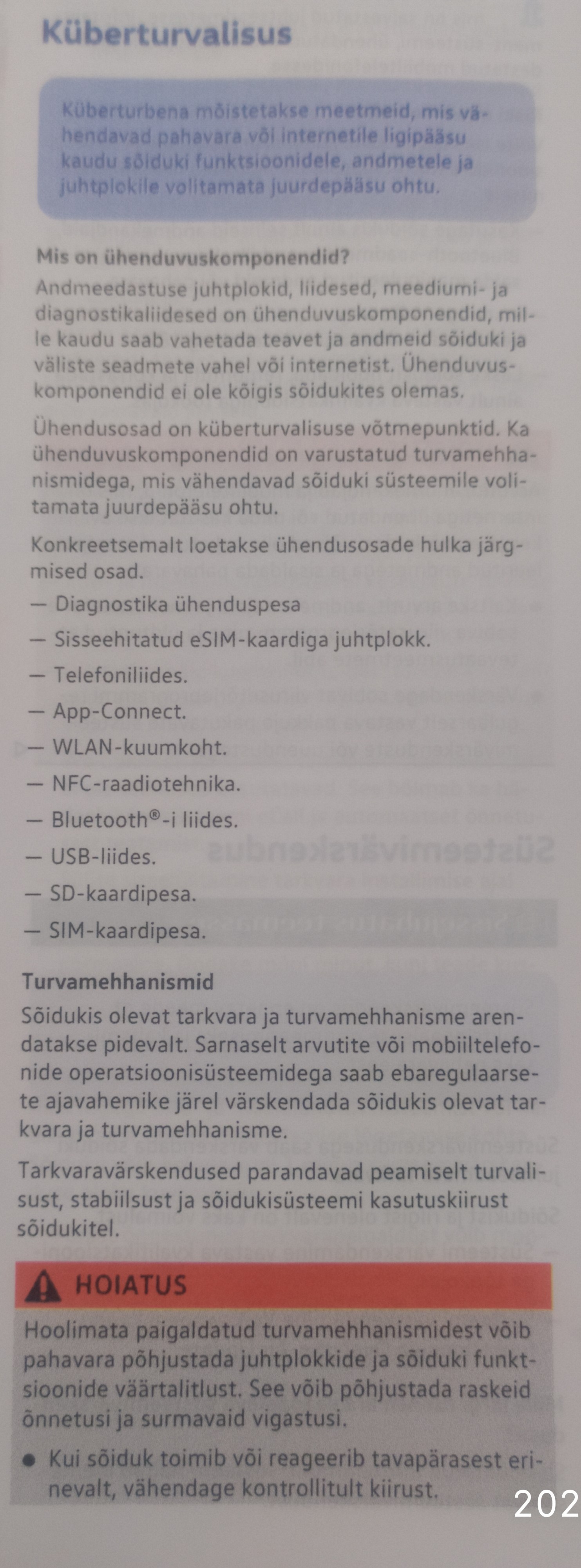 Tänapäevase auto kasutusjuhendis on mitukümmend lehekülge tarkvara alast teavet, mida autoomanik peaks teadma.