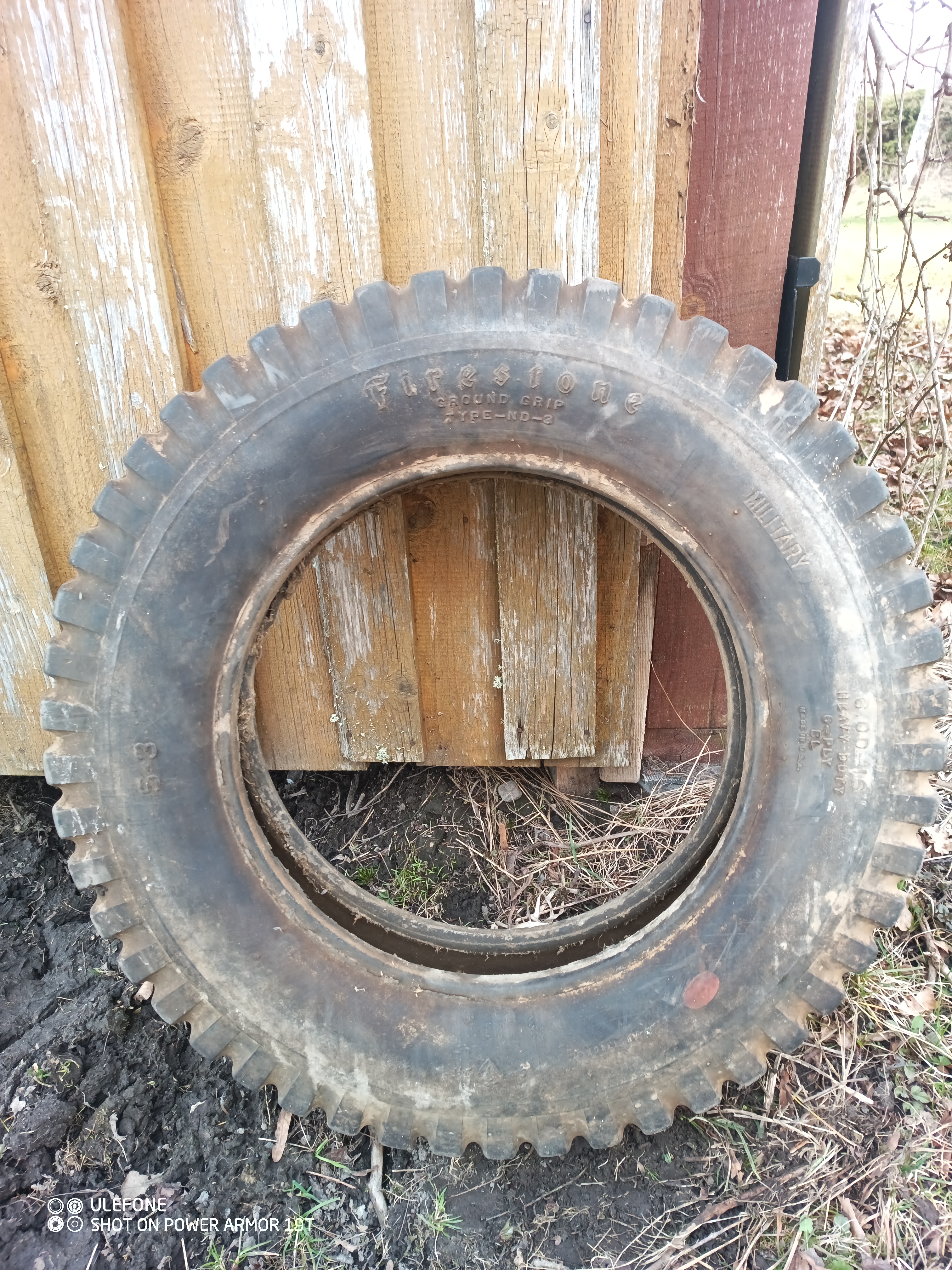Sellist mõõtu ja mustrit kasutasid Teise Ilmasõja aegsed Jeep Willysed. Mõnigi Willyse originaali taastaja oleks ilmselt sillas. 8) Ära minema küll viska.