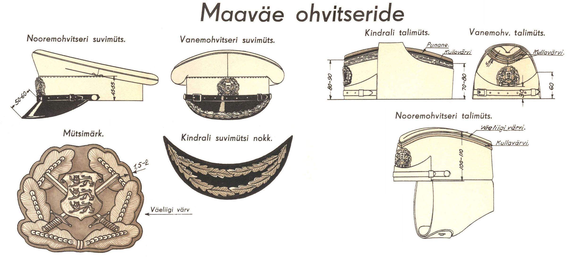 4. Mütsimärk peaks olema kuldset värvi ja väeliigivärvi alusel (jalaväes hall, suurtükiväes punane, ratsaväes valge jne)