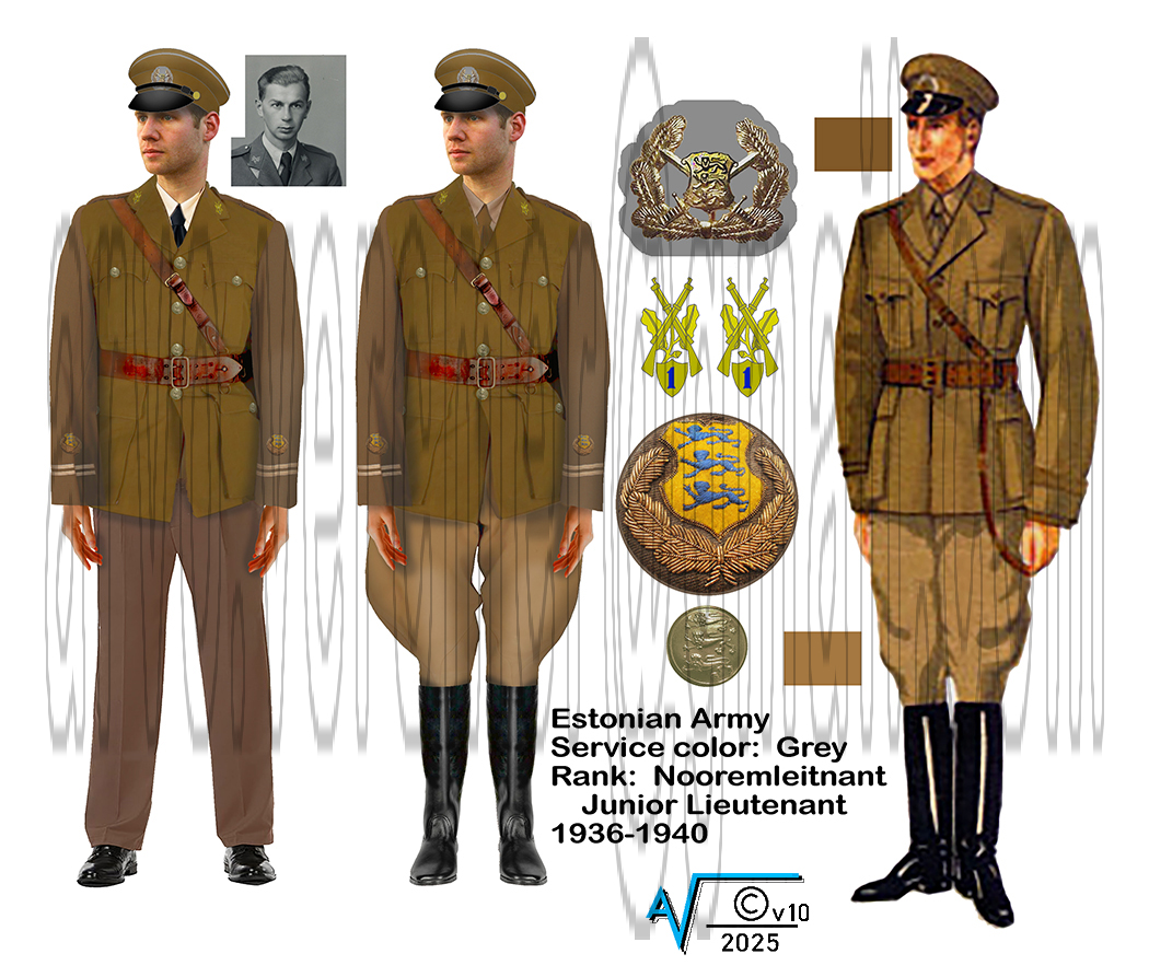 Vasaku ja keskmise härra õla- ja kõhurihmade laius peaks OK olema. Ma kasutasin üht originaalfotot sõduri kuue joonistamiel oma illustratsioonides. Väga võimalik, et parempoolse härra keharihmad on pisut kitsamad, sest nii nad 70-aastat tagsi joonistati.