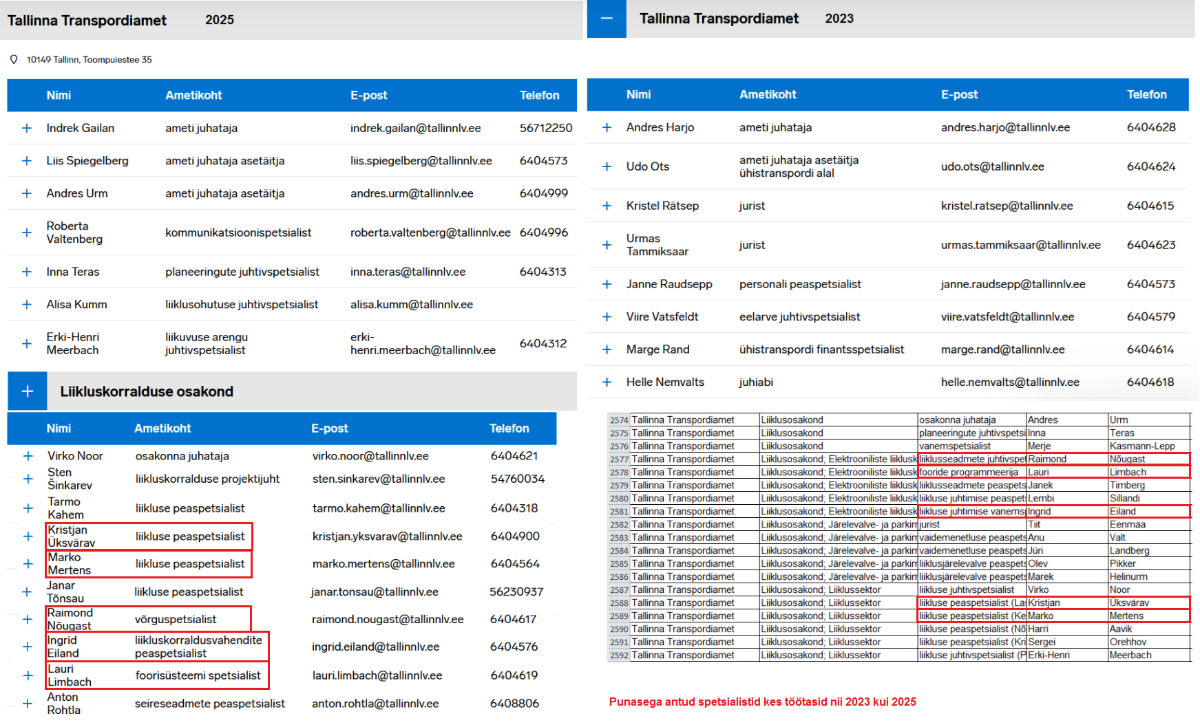 Vaatasin huvi pärast (teades, kuidas poliitikutel meeldib ka erialaspetse kangutada võimuvahetuste käigus), kui palju muudatusi viis uus kilulinna linnavõim sisse Tallinna Transpordiameti spetsialistide osas.