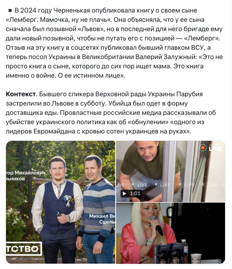 Lvivi elanik, keda süüdistatakse Parubiy tapmises, võis kaotada oma poja Bahmuti lähedal. Sellest kaotusest on kirjutatud raamat, mida soovitas Zalužnõi.