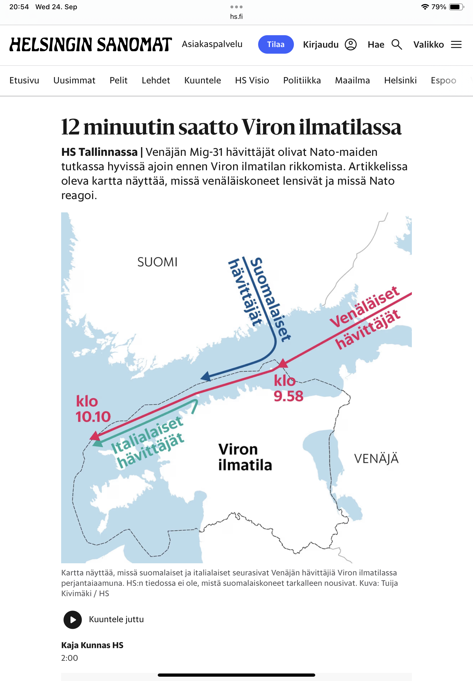 Soome joonisel sisenes meie õhuruumi varem ja väljus hiljem.