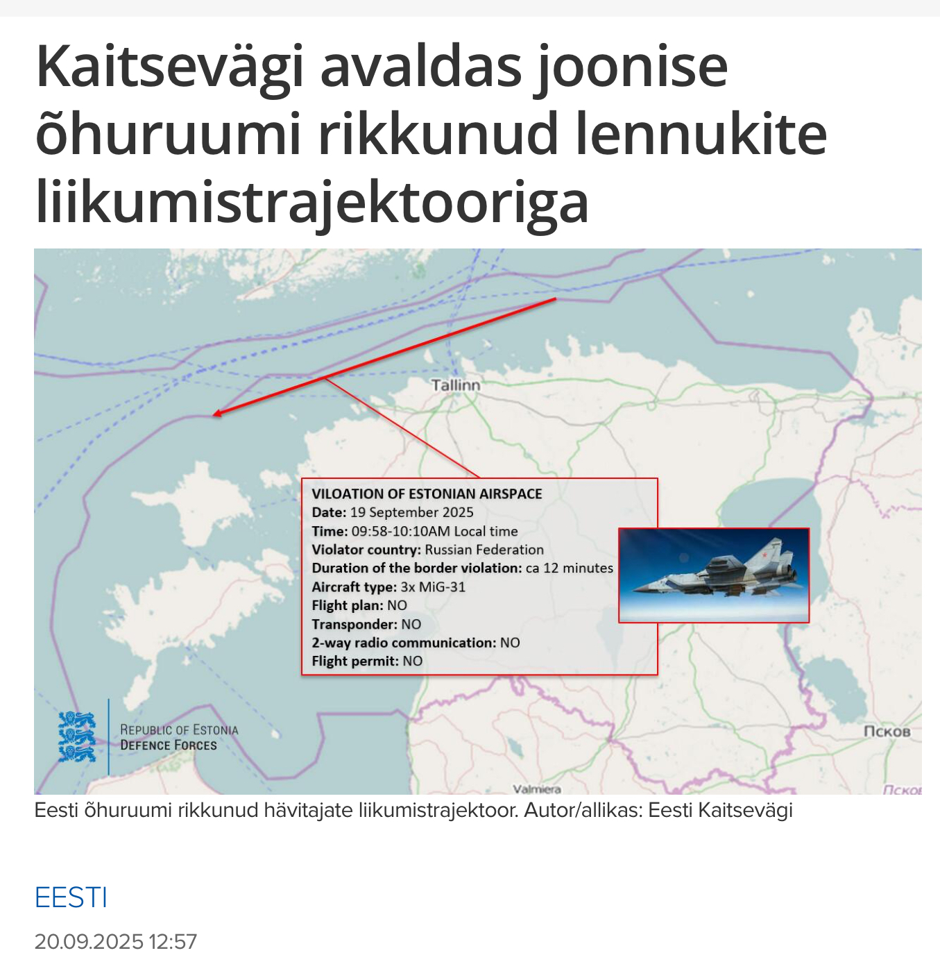 Re: Eesti põhjapiiri rikkumine 19.09.2025
