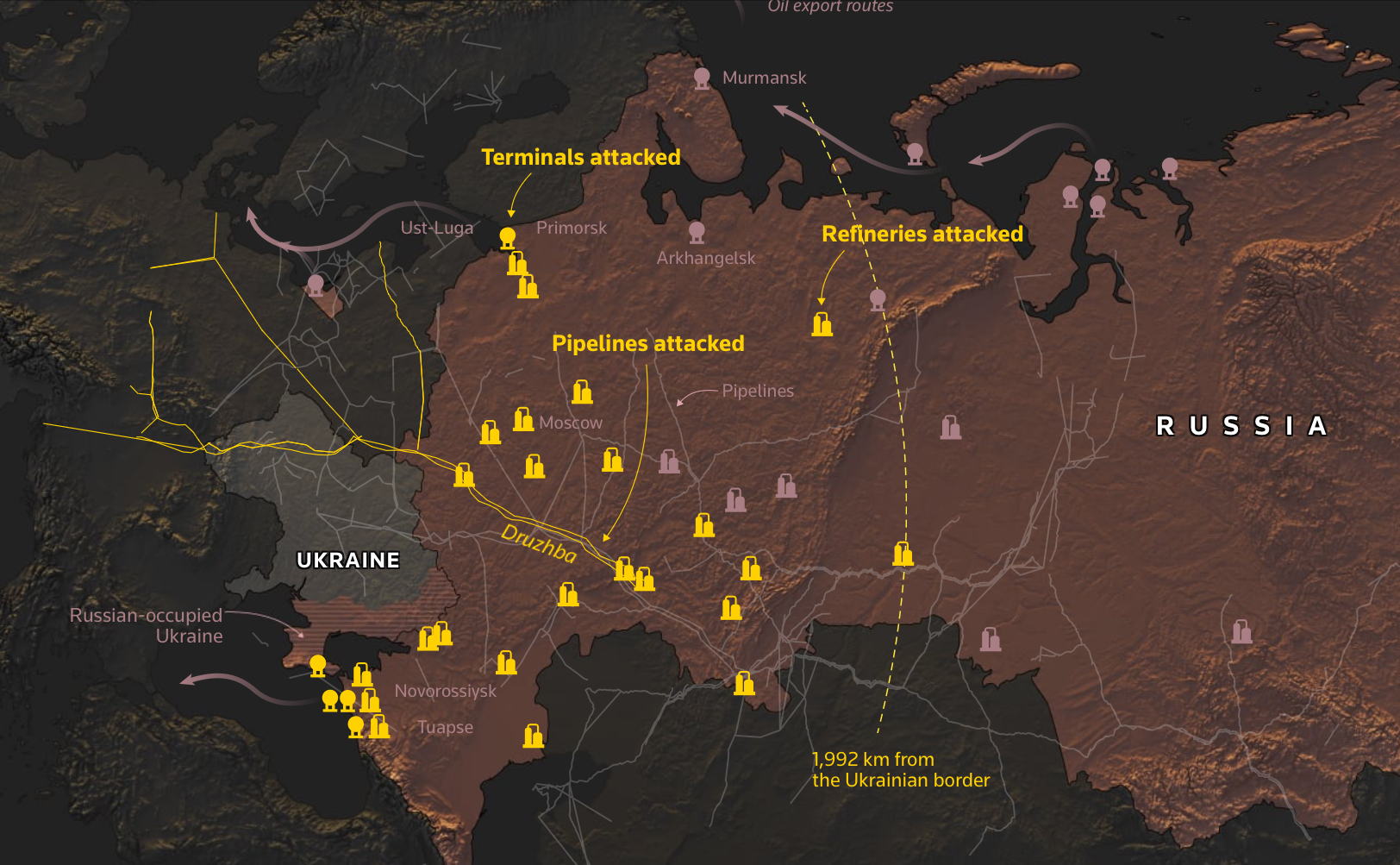 Neljapäeval ründasid Ukraina FP-1 pikamaa OWA-UAV-d Venemaal Rostovi oblastis asuvat Matvejevi Kurgani linna. Üks sihtmärkidest oli linna lõunaservas asuv kütuseinfrastruktuuri objekt, mis rünnakute tagajärjel tugevalt põlema süttis. https://x.com/Archer83Able/status/1976270388641333556