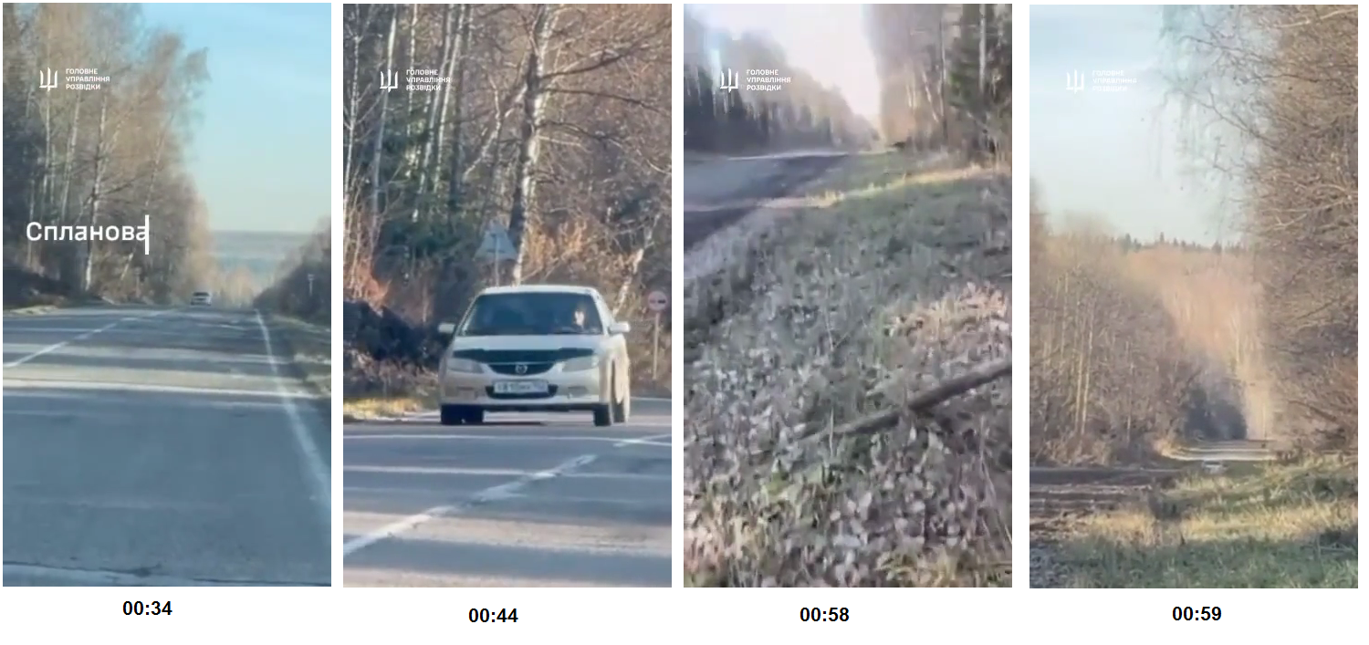 00:34 on üks, 00:58 on teine (tundub asfalttee) ja 00:59 on kolmas (ei tundu olevat asfalttee) ja kõigi kolme servades on erinev (erineva kooslusega) mets. Samuti maastik (nii lähedal kui taamal). 00:58 ja 00:59 võivad olla küll üsna lähestikku, kui seda 00:58 nähtavat teed mööda filmimise suunas edasi minna, siis seal kauguses kusagil võib tulla vastu küll (ei ole välistatud) selline maastik nagu 00:59 paistab.