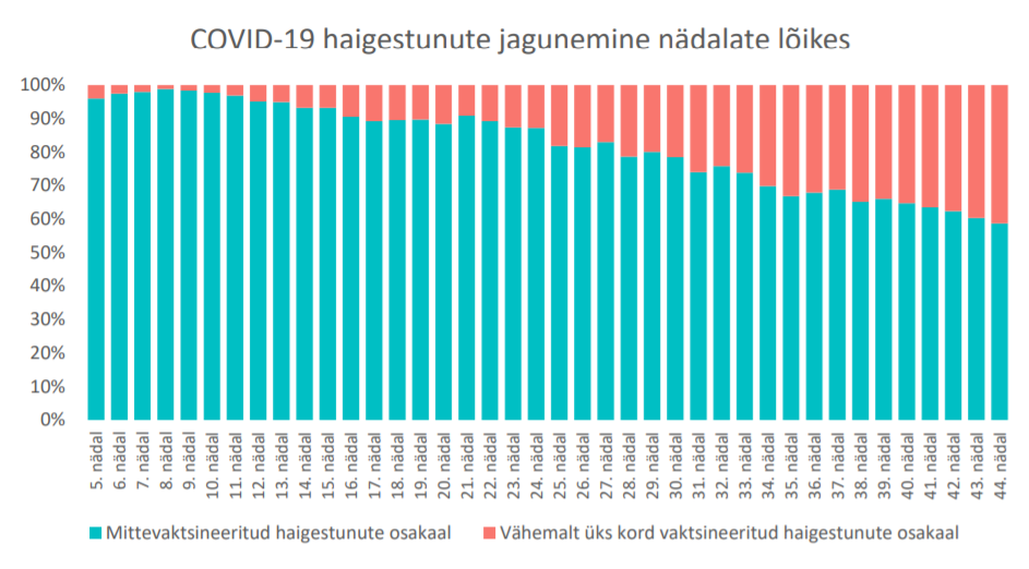 Statistilist mõju võivad avaldada juba praegu, kuna nädalapäevad on vaktsineeritud nakatunute osakaal igapäevaste nakatunute seas vähenenud, seda peale 3 kuulist pidevat suurenemist.